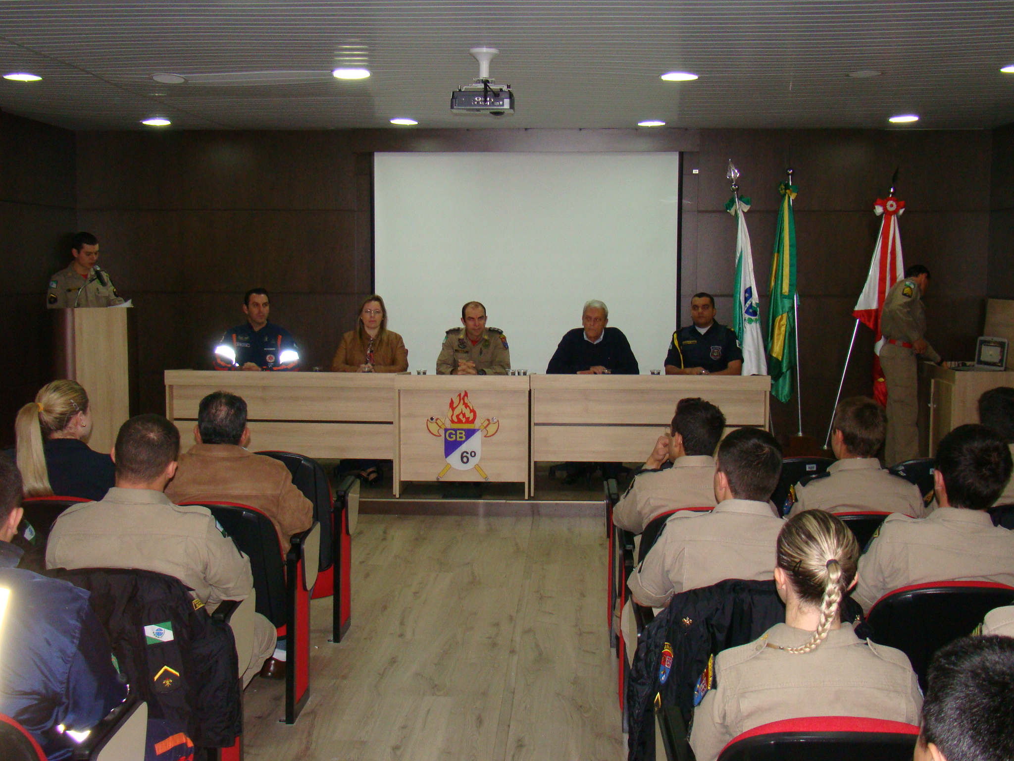 O 6º Grupamento de Bombeiros promoveu no dia 15 de julho às 09h a Solenidade da Aula Inaugural do Curso de Formação de Socorristas do 6°GB Turma - 2013. A referida cerimônia contou com a presença do Ilmo. Sr. Cap. QOBM Heitor Soster, representando o Cmte. do 6º GB – Ten. - Cel. QOBM Fábio Mariano de Oliveira, Cap. QOBM Fernando Ferreira Machado, o qual representou a Chefia do Centro de Ensino e Instrução – CEI, Ilmo. Sr. Secretário de Saúde de São José dos Pinhais Dr. Brasílio Vicente de Casto Filho e demais Oficiais da Unidade.