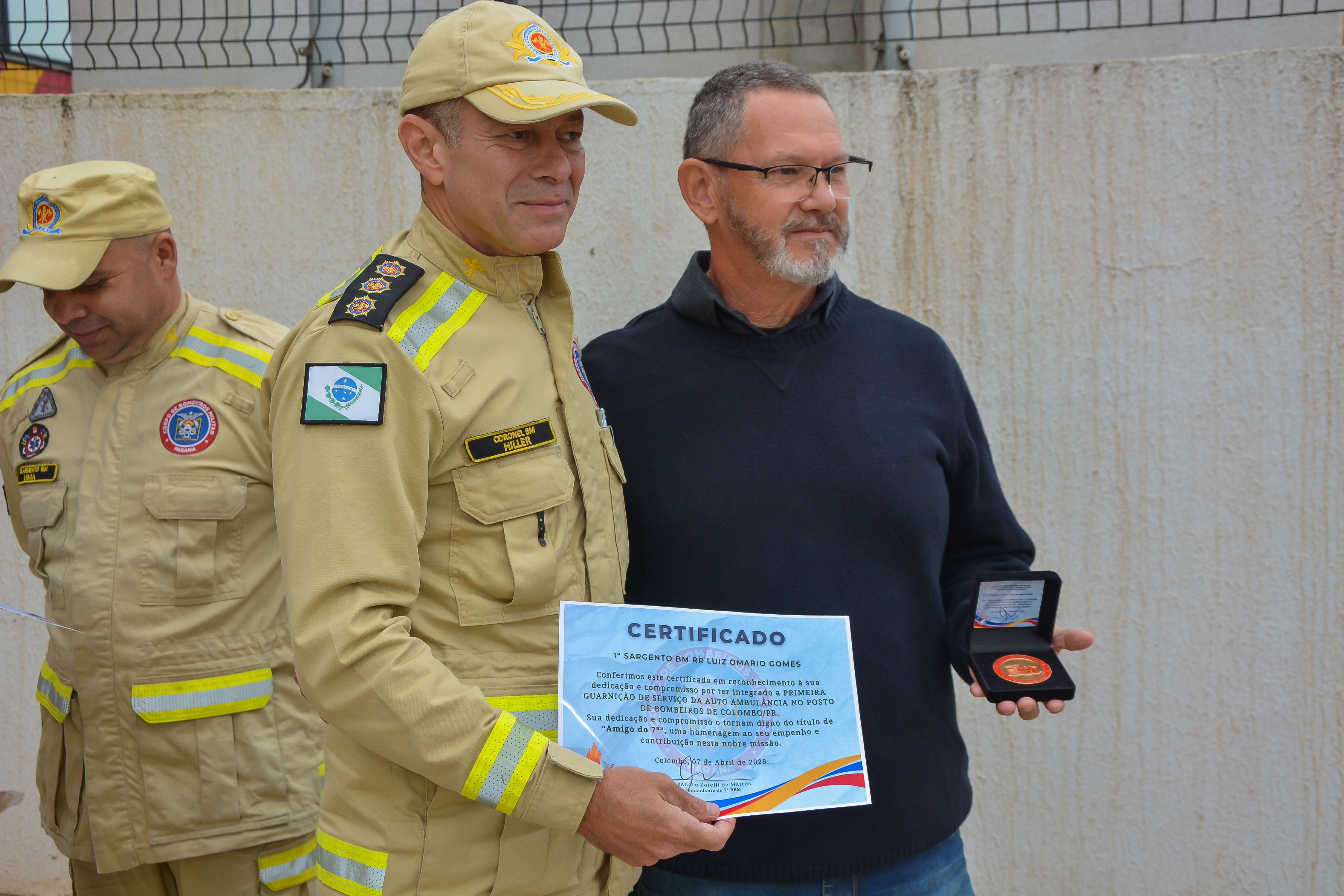 Durante a cerimônia, além das homenagens aos militares que receberam as medalhas de Ouro, Prata e Bronze, referente aos anos dedicados ao CBMPR, foi oficialmente instituída a honraria “Amigo do 7º BBM”, que passará a ser entregue anualmente durante a solenidade de aniversário da unidade. A condecoração tem como objetivo reconhecer pessoas e instituições que contribuíram significativamente para o fortalecimento do batalhão e para a valorização da profissão bombeiro militar.