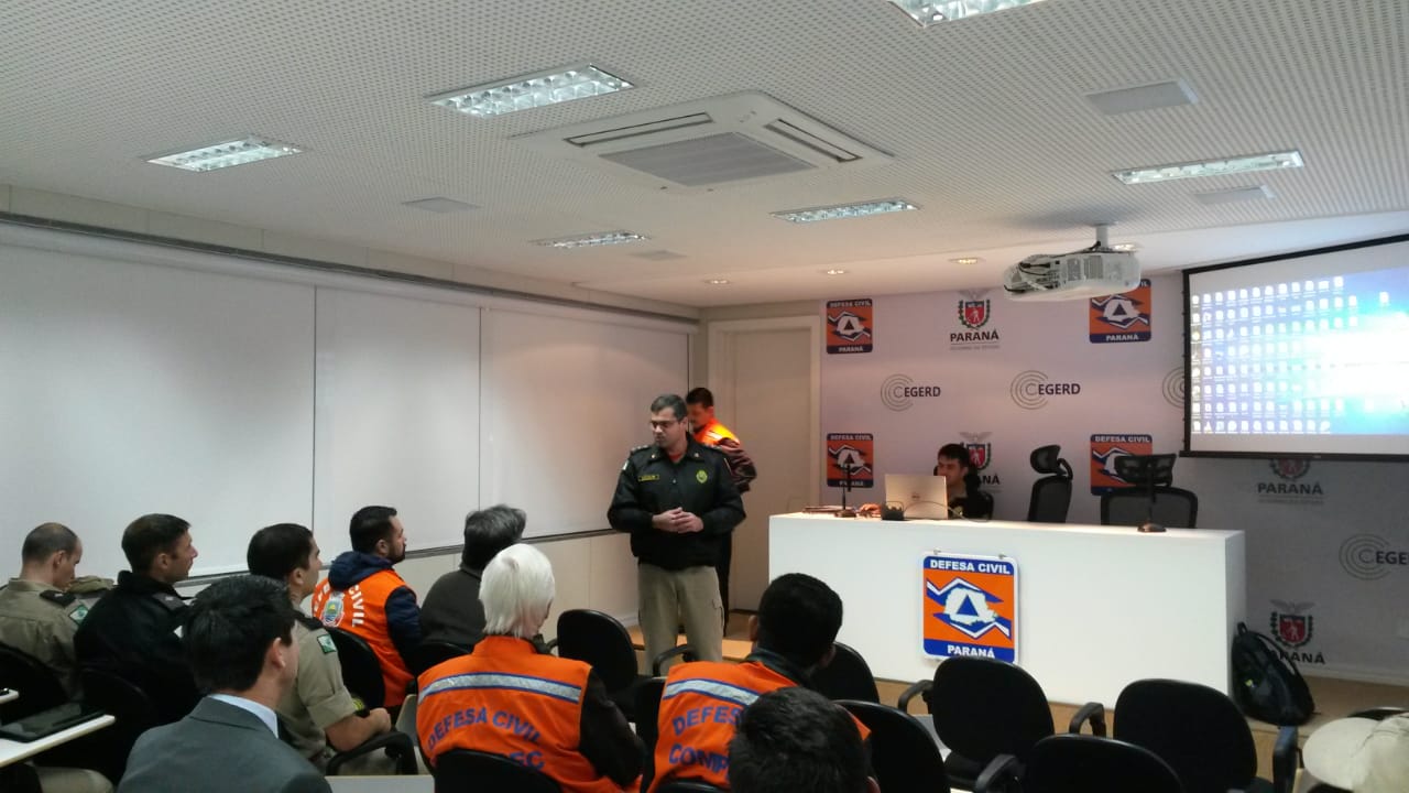 Nessa oportunidade foi orientado a regional e COMPDECs assuntos relativos ao funcionamento do Sistema de Defesa Civil MOBILE, bem como instrução relativa ao uso da ferramenta para cadastramento de residências nas áreas de risco. O Estado do Paraná conta com um radar banda x* que além de melhorar o monitoramento meteorológico da região, roda um sistema de previsão de deslizamento em algumas regiões do 7º Grupamento. Cadastrando essas residências será possível a Defesa Civil emitir alertas previamente aos desastres.