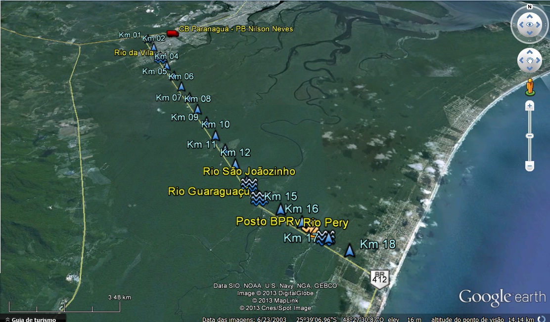 Após trabalho de fôlego, o 8º Grupamento de Bombeiros – Litoral, concluiu recentemente o mapeamento georreferenciado de todas as PRs e BRs do litoral do Paraná, com ênfase nos marcos de quilómetros, rios principais, instalações de interesse e retornos (operacionais e convencionais) ao longo de tais rodovias.