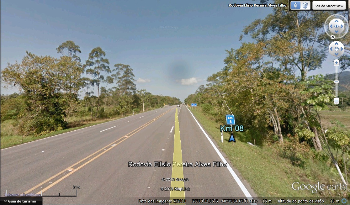 Utilizando, ainda, os recursos inerentes ao próprio aplicativo pode-se, por exemplo, mensurar distâncias de isolamento (recurso “régua”), determinar as coordenadas geográficas exatas da situação para coordenação com aeronaves e em muitas regiões, obter-se uma visão real (recurso “street view”) das características do terreno com relativa precisão e confiabilidade, uma vez as imagens foram produzidas em 2011. O arquivo agregou ainda o Plano de Operações (POp) para atendimento à BR 376, no qual são estabelecidos protocolos de acionamentos para a Concessionária Autopista Litoral Sul, 8º GB e 6º GB, visando a racionalizar recursos, ou seja, ele estabelece de forma clara qual a ordem de deslocamento de determinada instituição/OBM para determinado quilómetro e sentido da via. Como o arquivo produzido concebe informações de todas as BRs (277 e 376) e PRs (340, 405, 407, 408, 410, 411, 412, 508 e 804) do litoral, podendo, portanto, ser útil a outras instituições, o mesmo foi devidamente repassado à empresa Minerais do Paraná (MINEROPAR), Instituto Tecnológico SIMEPAR, Grupamento Aéropolicial de Resgate Aéreo (GRAER) e Grupo de Operações e Socorro Tático (GOST/CCB). Porém, aqueles que desejarem acesso ao arquivo .kmz elaborado, com instruções básicas de utilização, basta enviar um e-mail para 8gb-b3@pm.pr.gov.br, solicitando o envio de uma cópia.