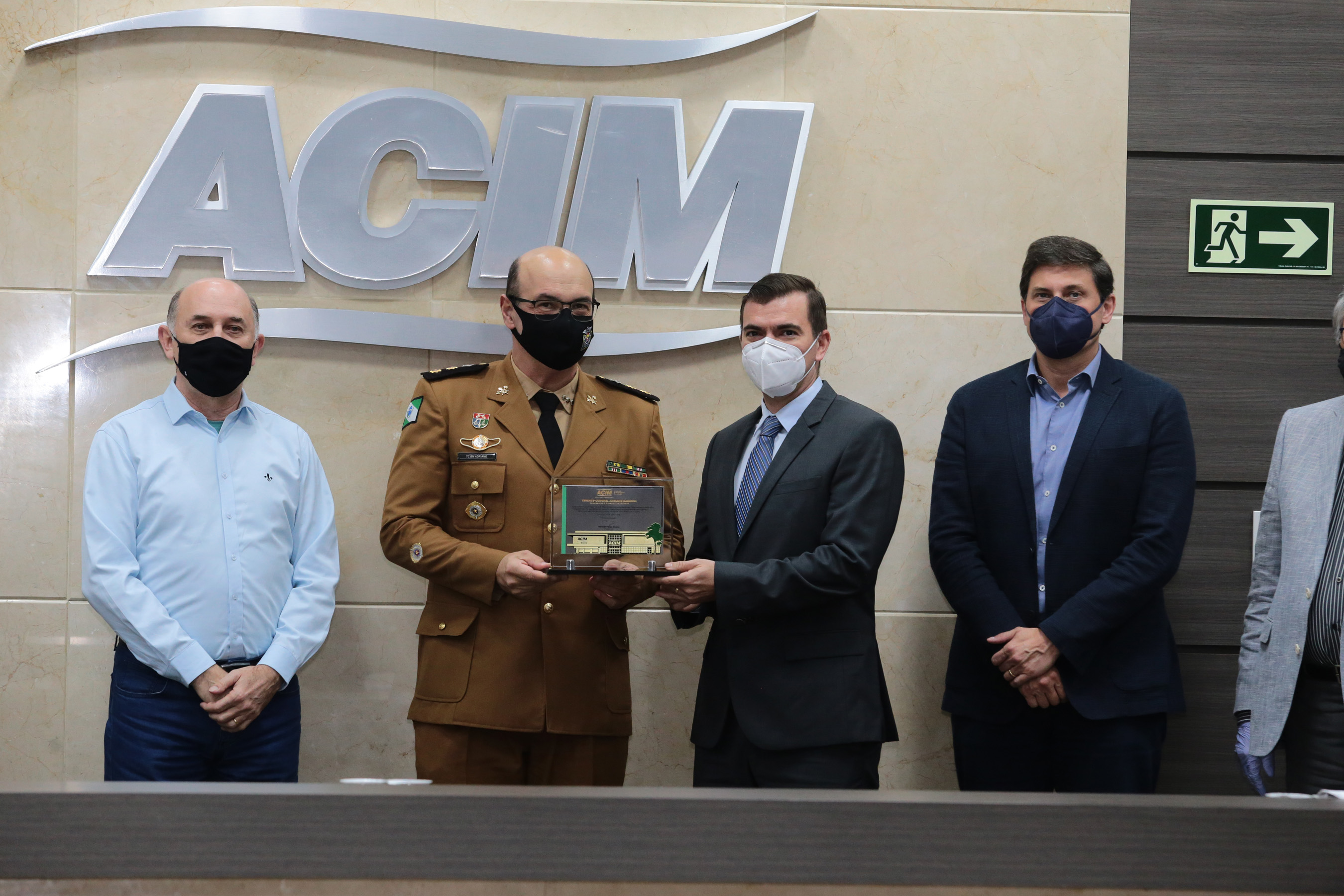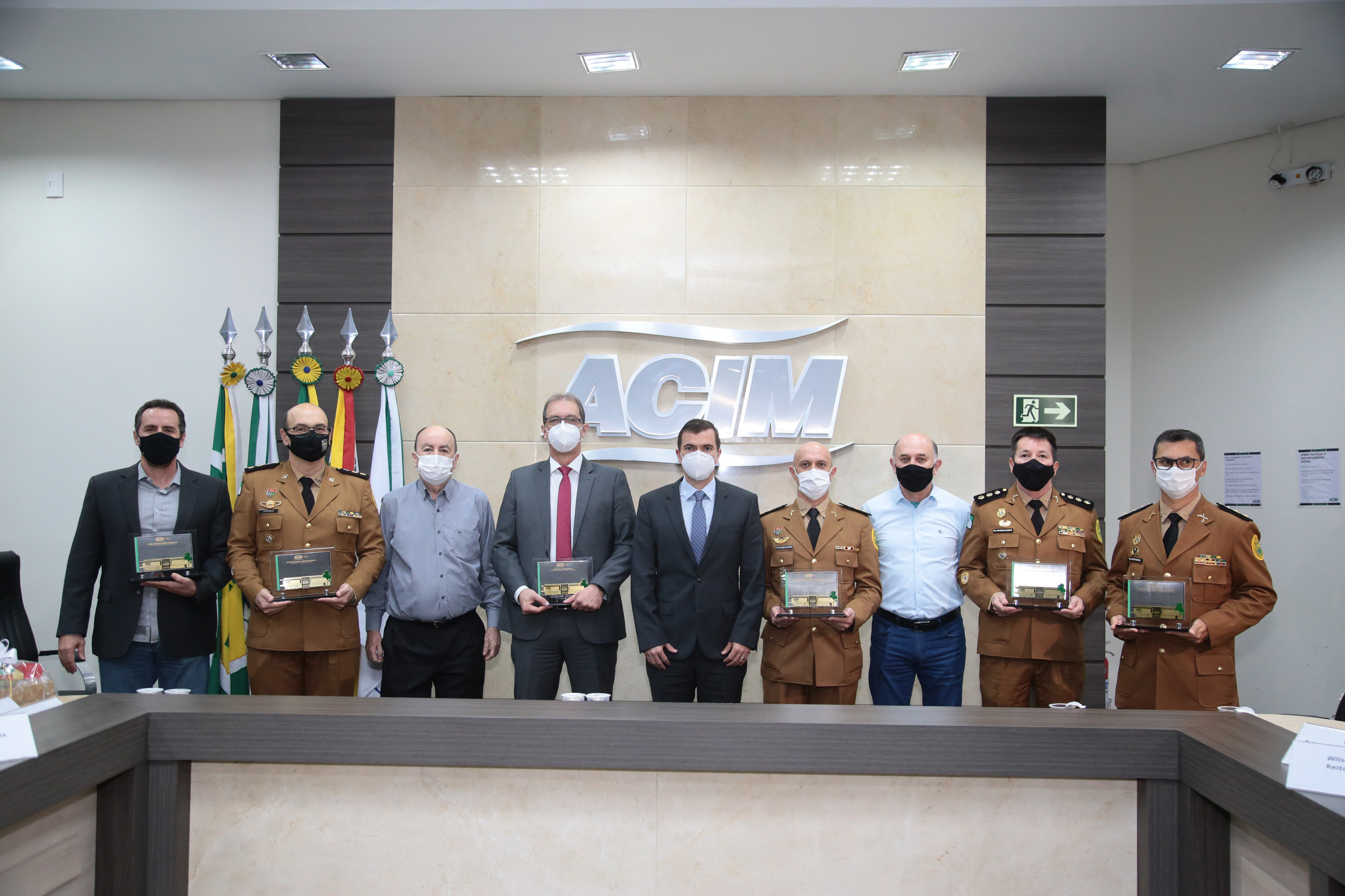 Quartel Central do 5ºGB (13/07/2021) - A Associação Comercial e Empresarial de Maringá (ACIM) realizou uma homenagem às Forças de Segurança maringaenses. Na noite desta segunda-feira (12), foi transmitida, ao vivo pelo YouTube da associação, a solenidade que condecorou as instituições de segurança pública de Maringá.