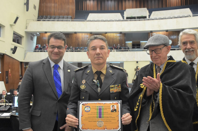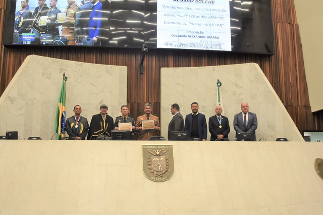 A Academia de Letras dos Militares Estaduais do Paraná (ALMEPAR) comemorou seu quinto aniversário em uma sessão solene realizada no Plenário Deputado Waldemar Daros. O evento, proposto pelo deputado Alexandre Amaro, homenageou militares que se destacaram na produção de obras literárias e documentais que contribuíram para a preservação histórica e cultural da sociedade paranaense.