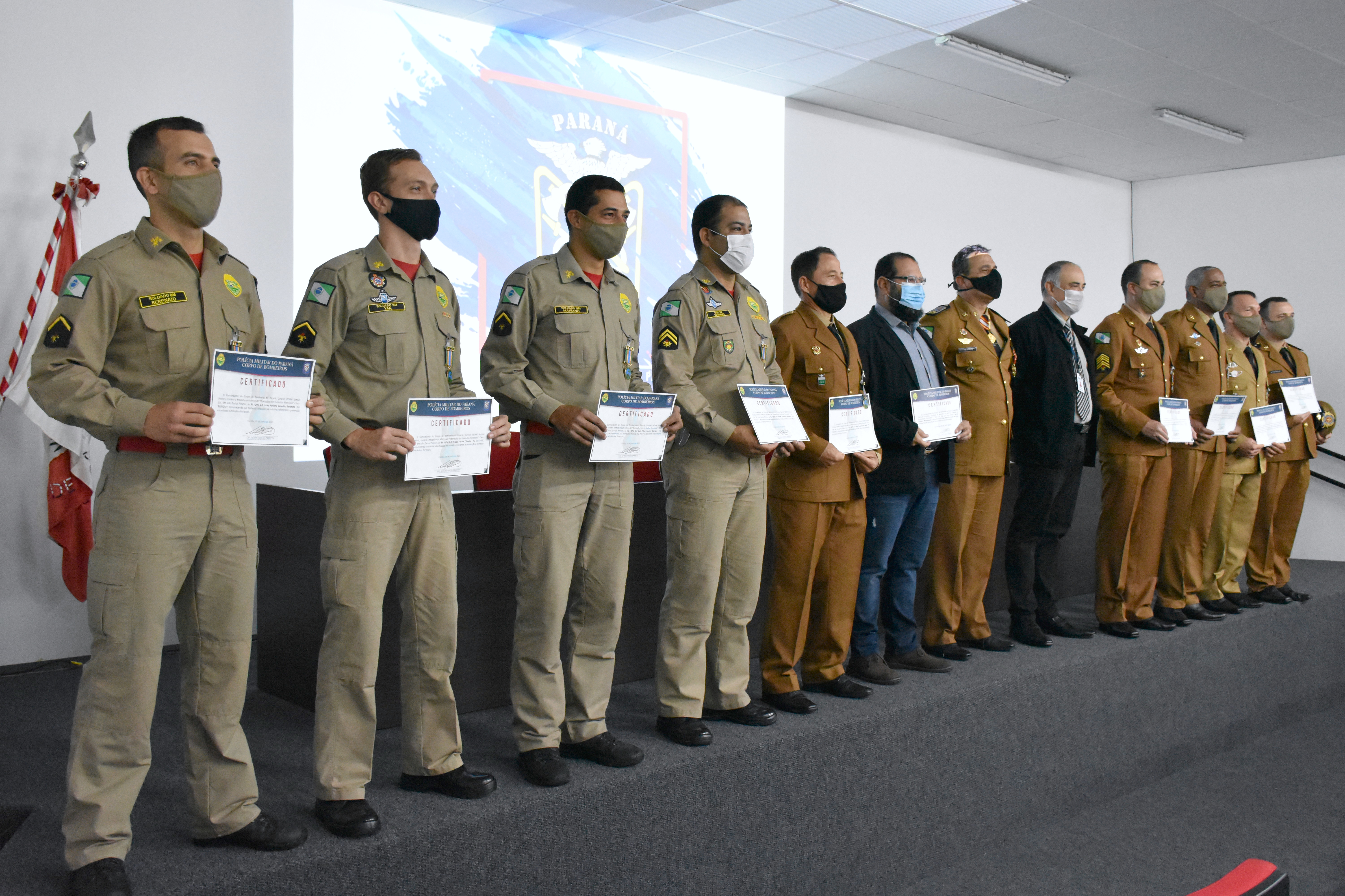 Nesta cerimônia foram homenageados com a Medalha de Mérito de “Operações em Incêndios Florestais” os Bombeiros Militares Paranaenses que atuaram na “Operação Amazônia” no ano de 2019, lutando bravamente contra os incêndios que assolaram o Estado do Pará, na Floresta Amazônica, obtendo êxito nas missões em que foram demandados.