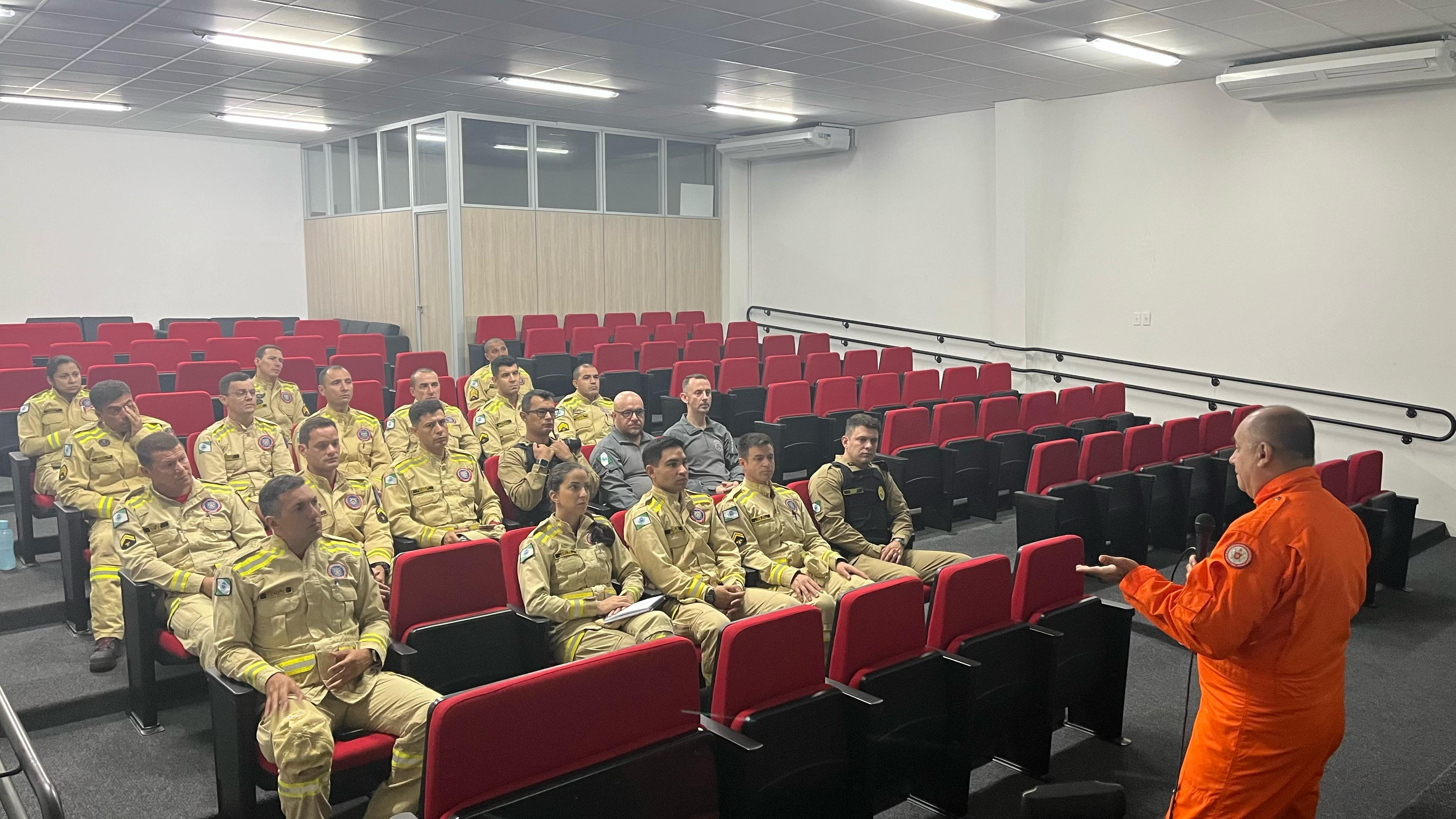 O Subcomandante-Geral do CBMPR, Cel. Adriano Barbosa, também participou da aula inaugural e relatou em sua explanação a importância dessa capacitação e a satisfação em verificar e evolução do CBMPR.