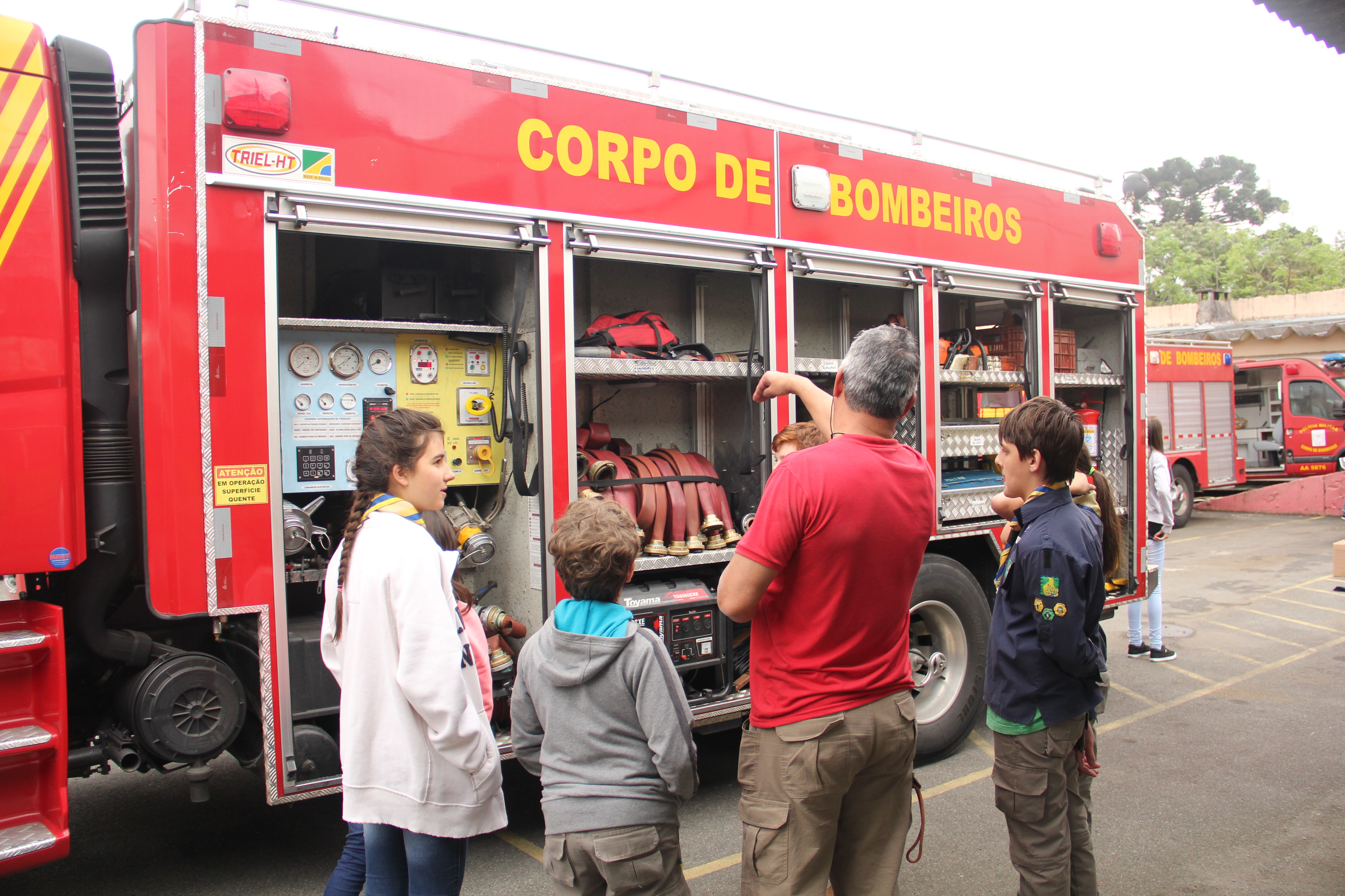 A ação educativa realizada foi voltada para a turma de Escoteiros, que esteve acompanhada por seus chefes e de alguns pais que puderam prestigiar as atividades na busca de integração entre o Corpo de Bombeiros e a comunidade.