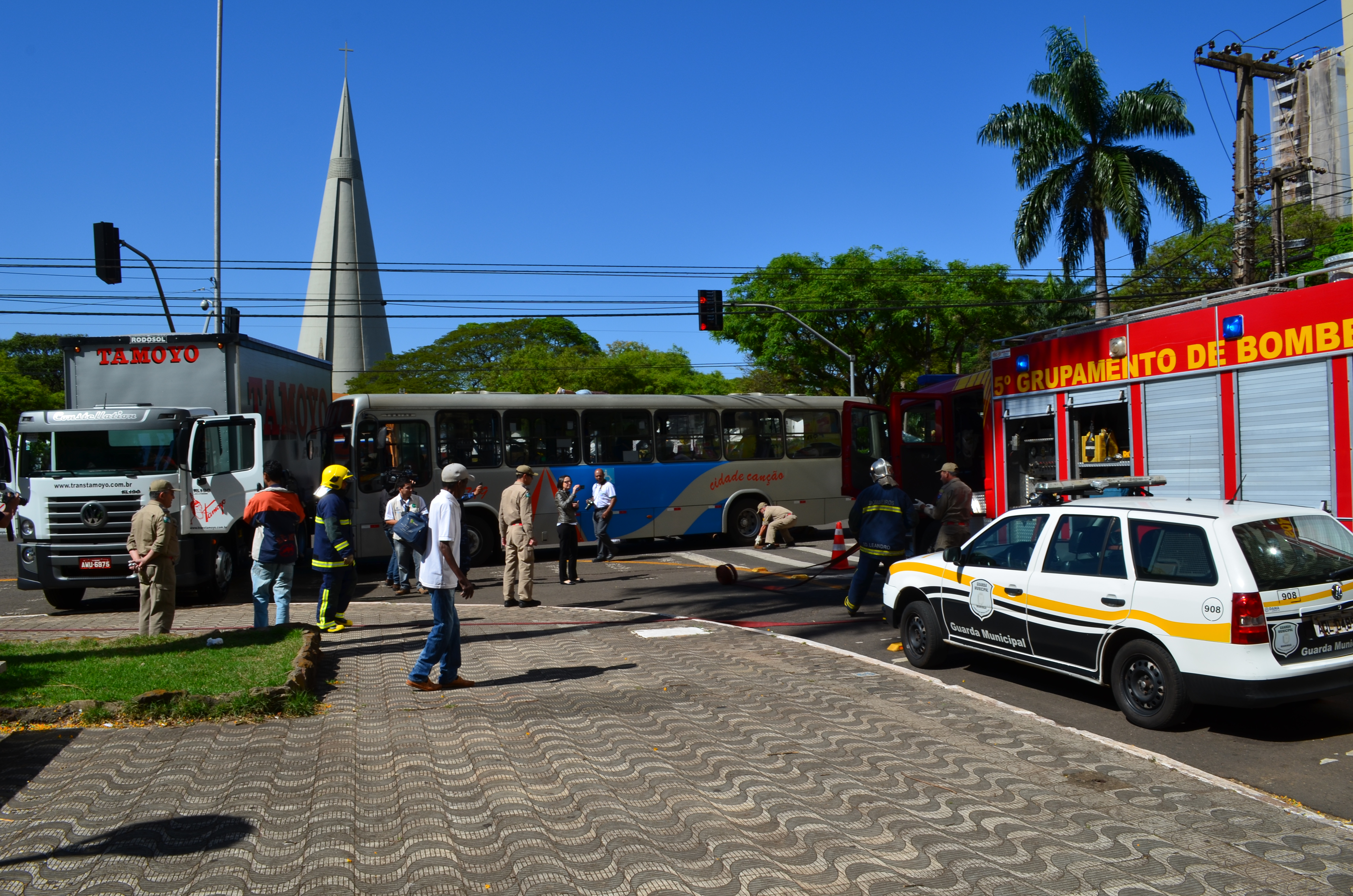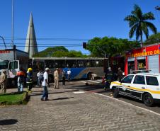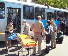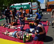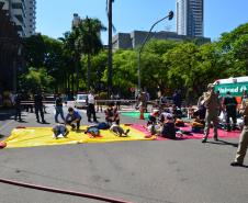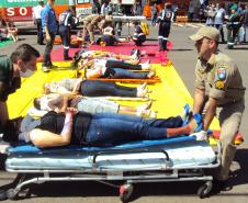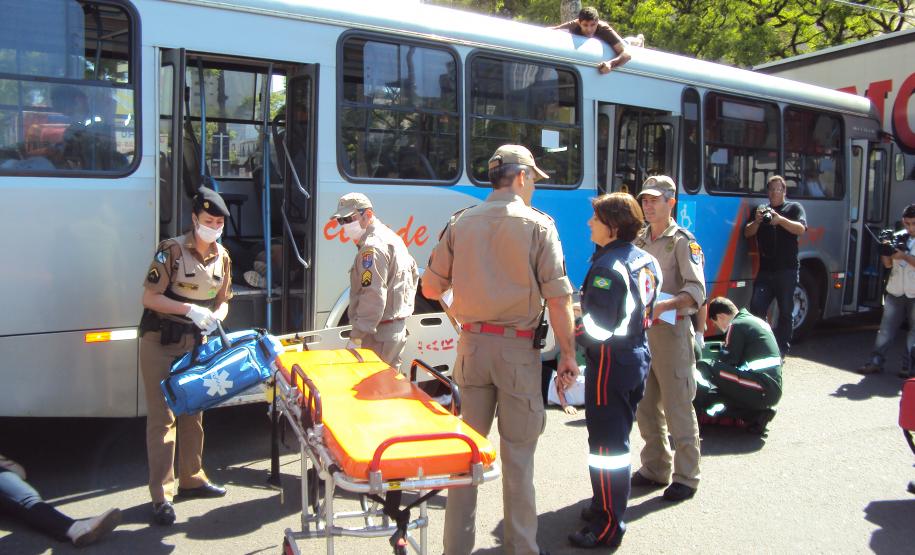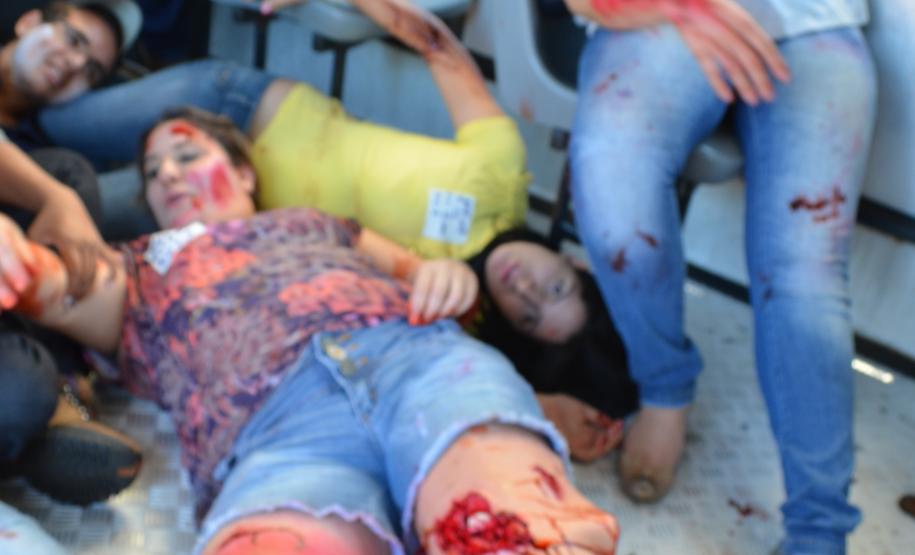 A cena foi montada no Centro de Maringá, onde foi simulado um acidente entre Ônibus e Caminhão.