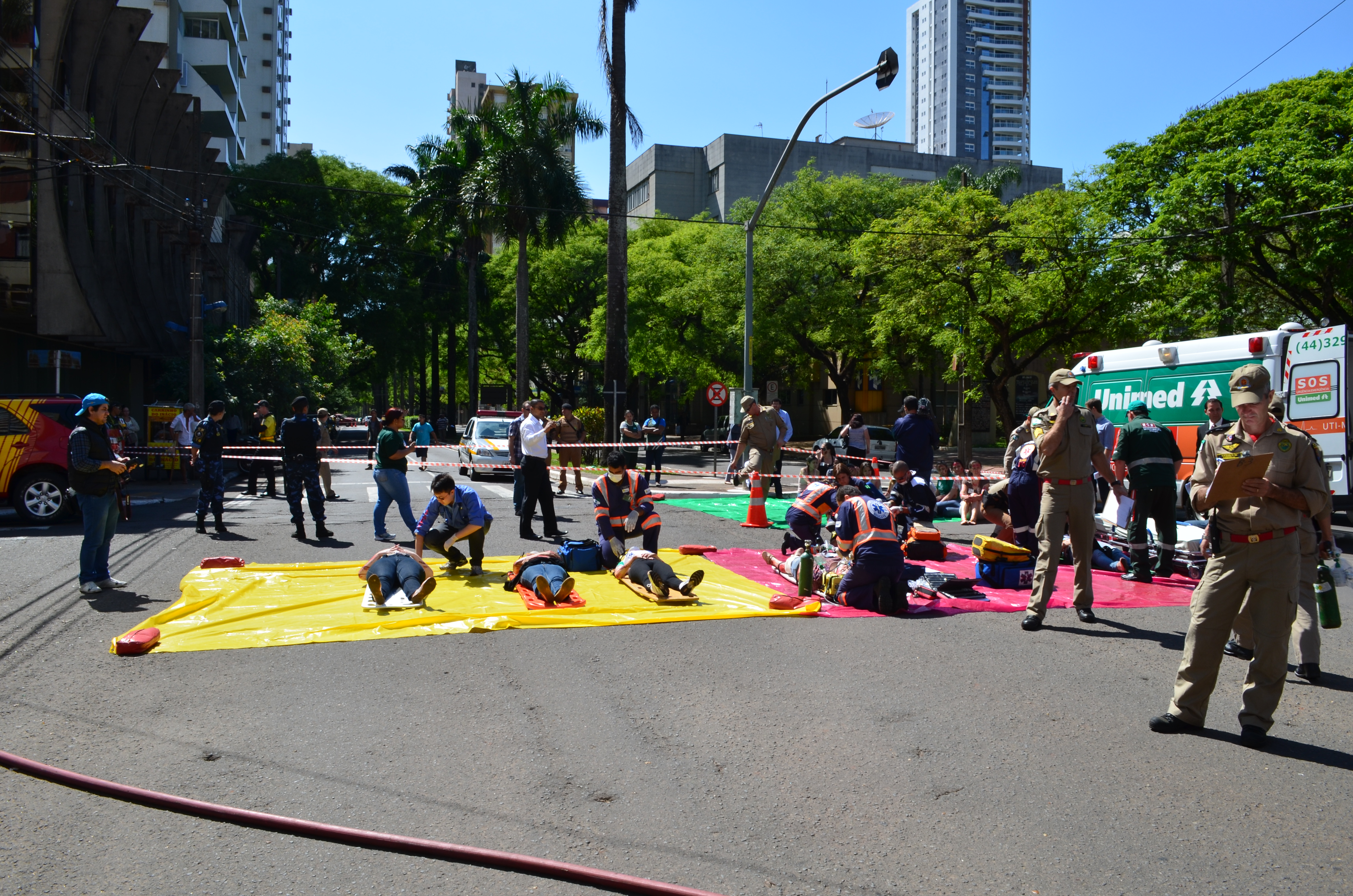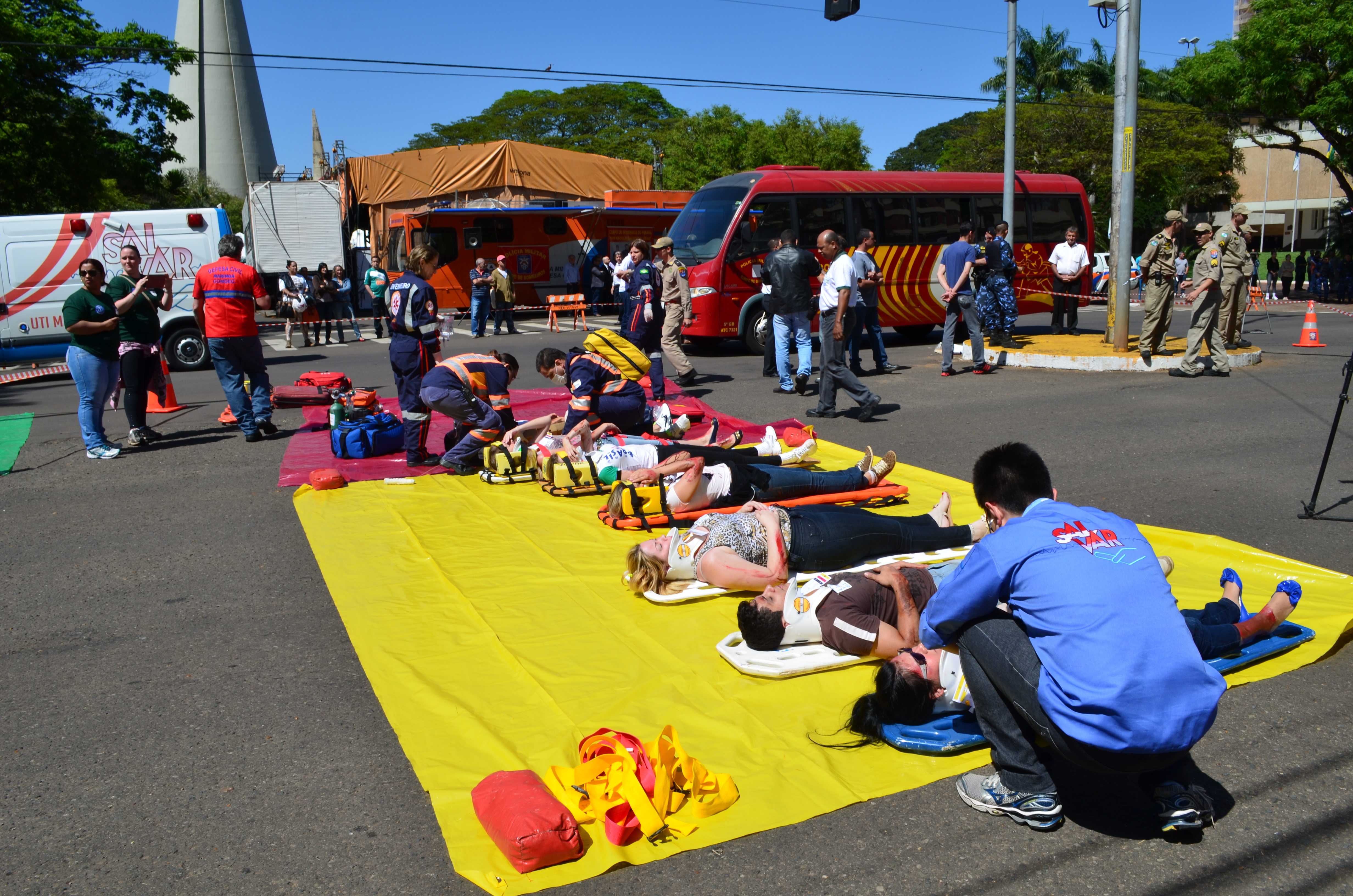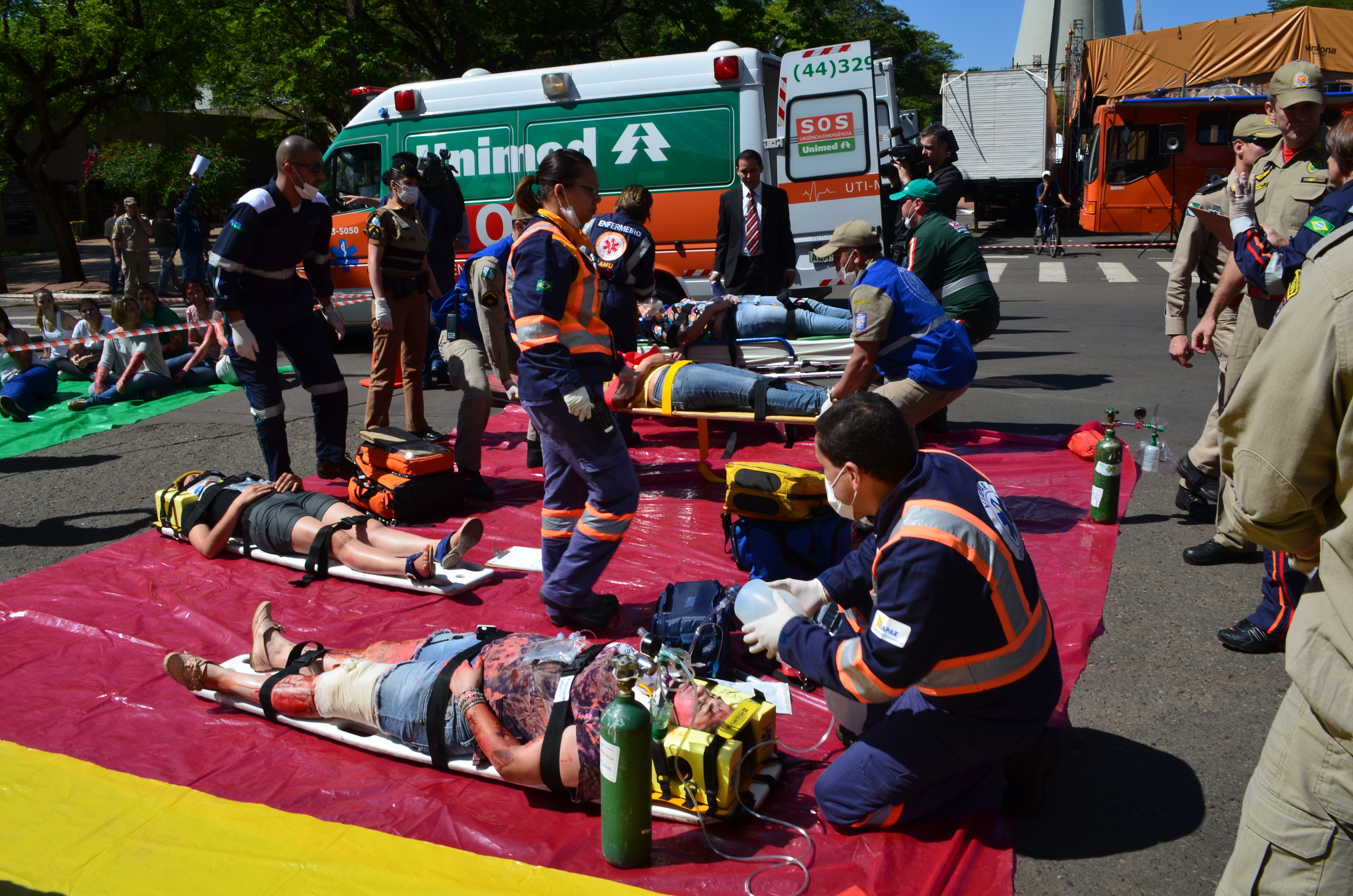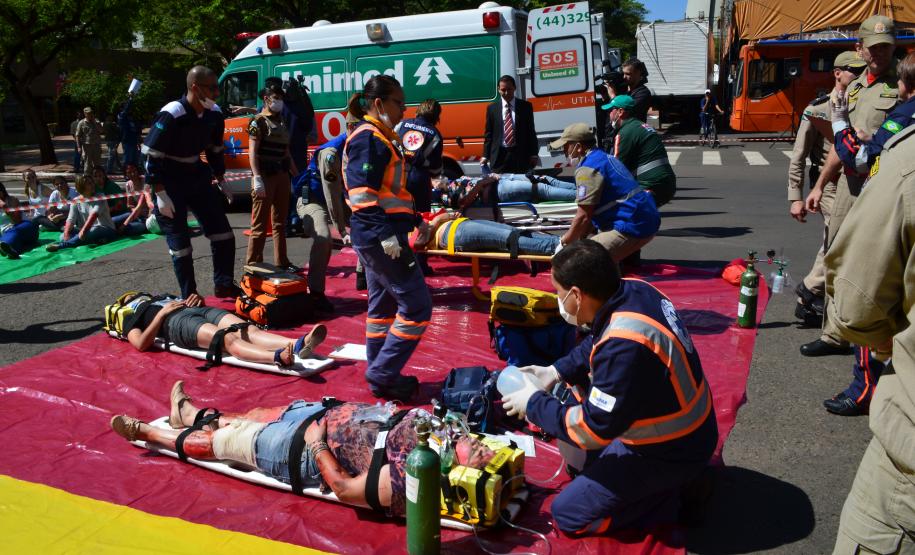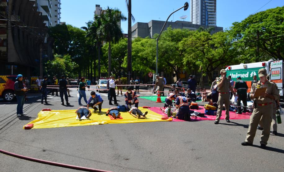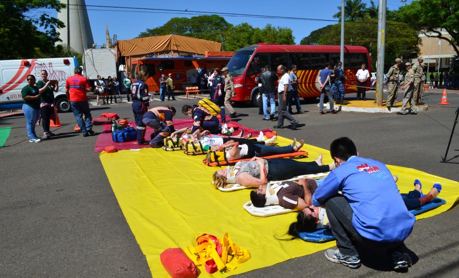 Ao todo foram utilizados 120 participantes, sendo eles, alunos do Curso de Aperfeiçoamento de Praças, bombeiros escalados de serviço operacional diário do Grupamento, Socorristas e Médico do SAMU – Maringá, Socorristas da Concessionária VIAPAR, Socorristas da UNIMED e da empresa SALVAR, Socorristas do HOSPITAL SANTA RITA, SETRAN/MARINGÁ, GUARDA MUNICIPAL de Maringá e Polícia Militar (4º BPM), e também 30 alunos do curso de enfermagem da UNINGÁ.