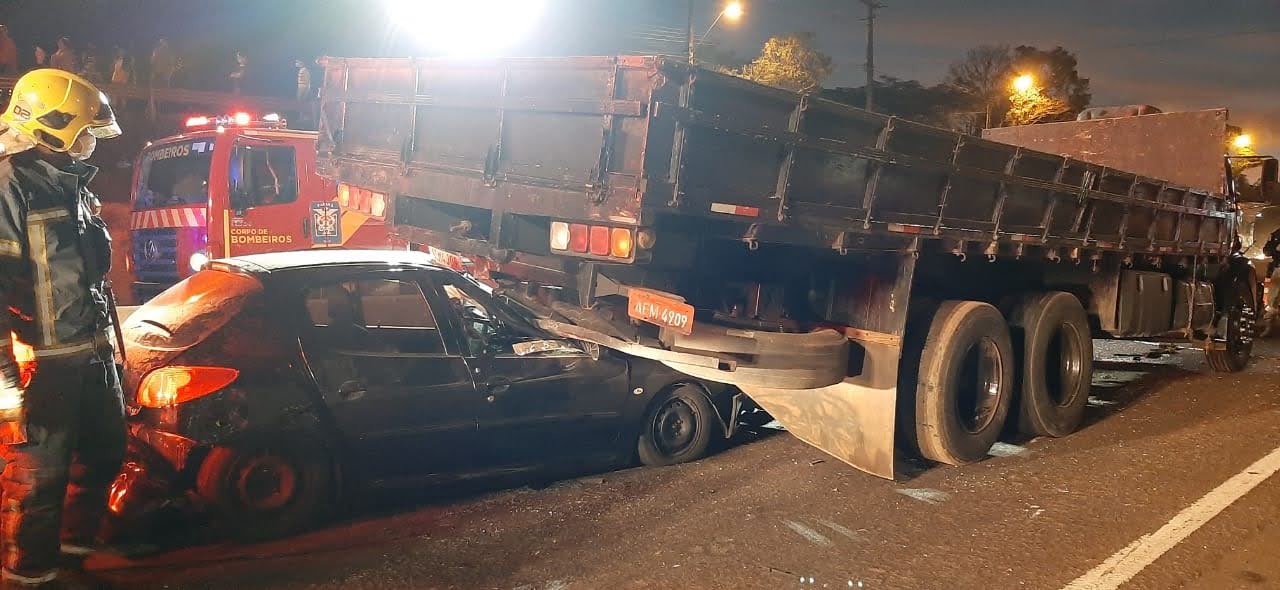 De acordo com informações colhidas no local, após a colisão traseira envolvendo dois caminhões, um automóvel acabou chocando-se com a retaguarda do último veículo pesado, e em virtude da desaceleração brusca a energia foi transferida aos seus três ocupantes. A passageira dianteira, mulher de 67 anos, sofreu o maior trauma, tendo parada cardiorrespiratória estando presa às ferragens.
