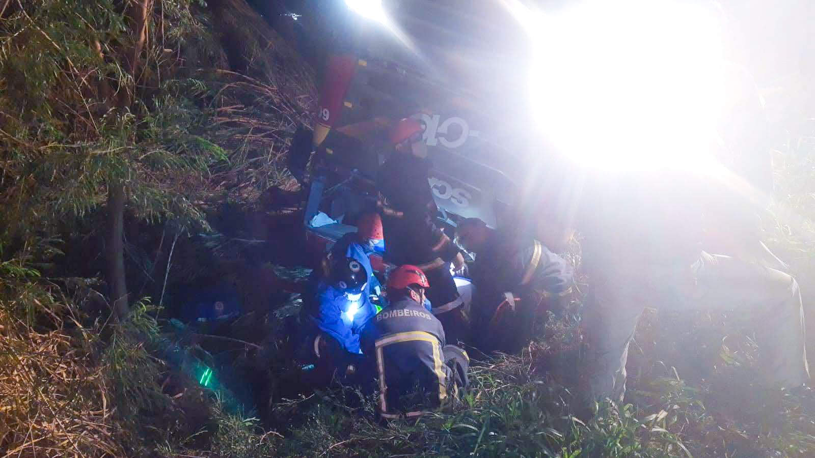 Para a retirada do homem, foi necessário empregar técnicas de resgate veicular, após a remoção do para-brisas, o motorista foi retirado. Ele teve ferimentos considerados leves, com escoriações e contusões em crânio e em tórax. A vítima foi encaminhada, sem risco de perder a vida, para o Hospital Metropolitano.