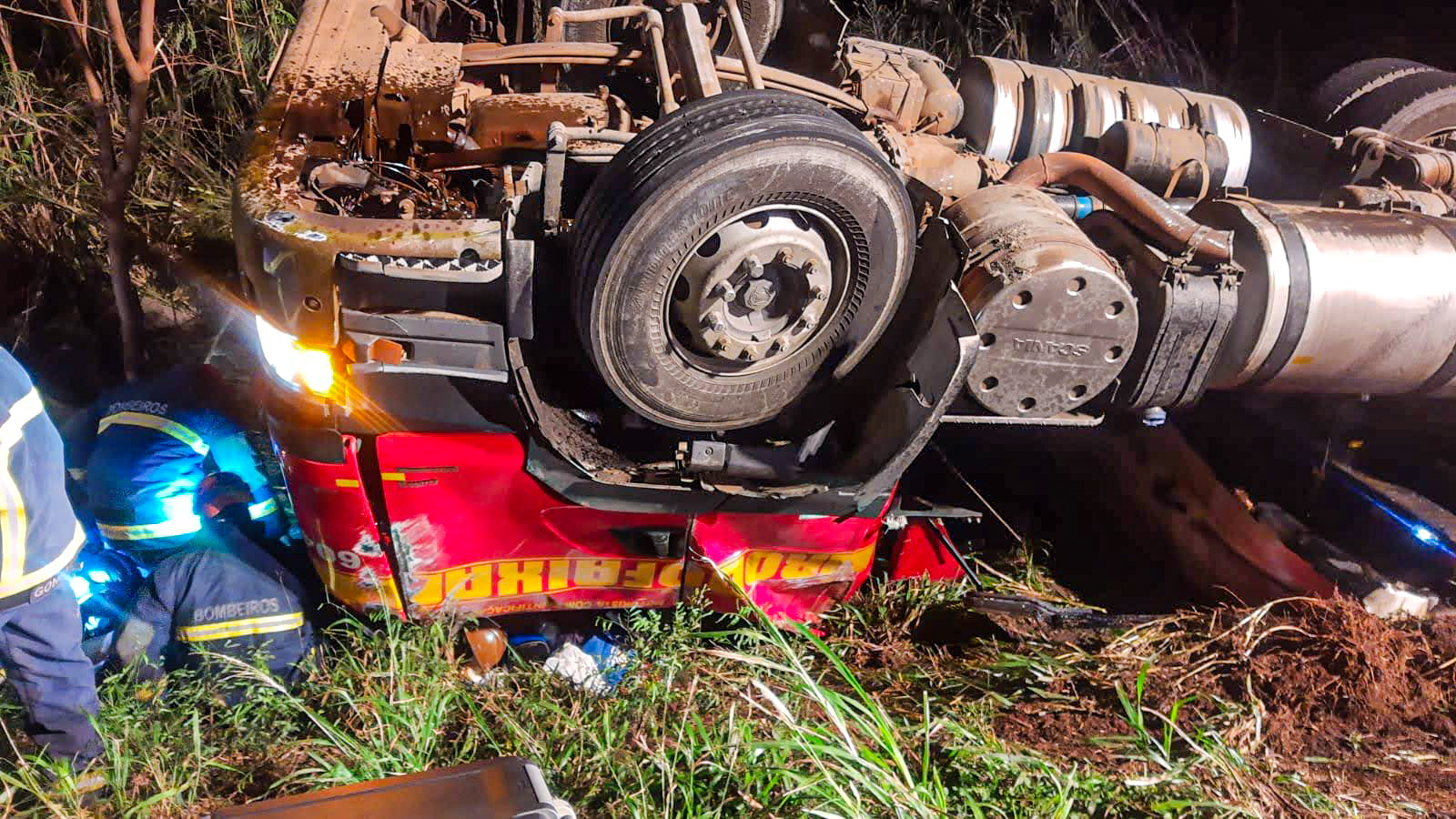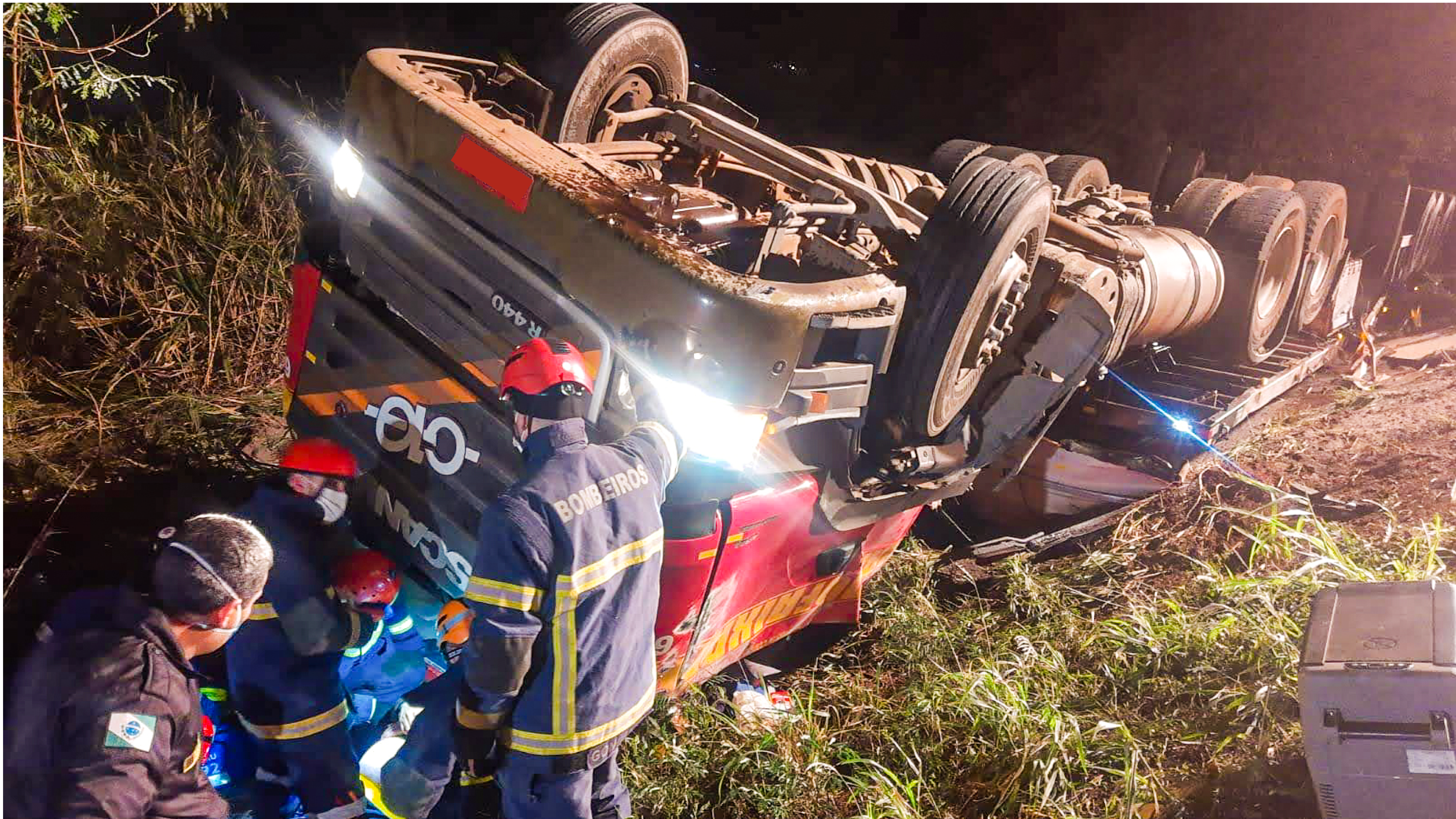 O Corpo de Bombeiros foi acionado às 19h57 para retirar o motorista, 46 anos, da cabine, embora o homem tenha ficado retido no veículo, a deformação não acarretou graves lesões. Para o local, foram direcionados um caminhão de resgate, uma caminhonete para gestão e uma ambulância. No total, sete bombeiros militares realizaram o atendimento da ocorrência.