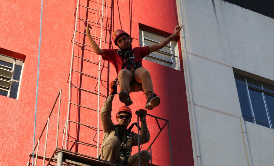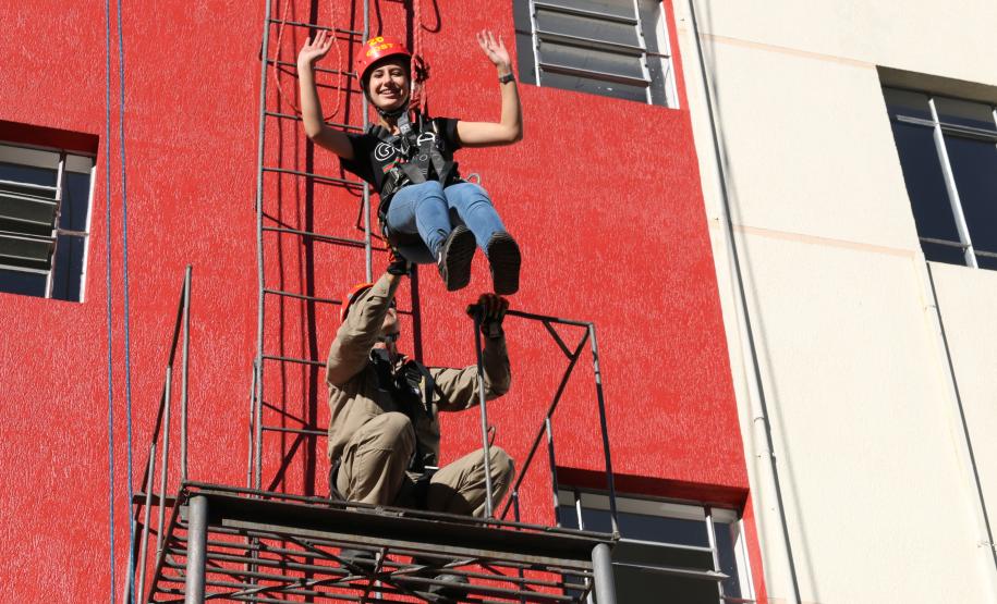 Ao final, os participantes puderam participar da tradicional decida de rapel e sentir o "frio na barriga" característico.