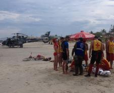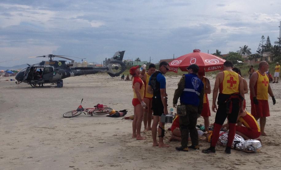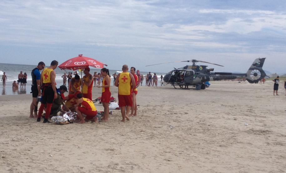 Os guarda-vidas e o médico que tripulava a aeronave Falcão IV realizaram os procedimentos de desobstrução de vias aéreas e ressuscitação cardiopulmonar (RCP) por cerca de 1h20min, momento em que os sinais vitais retornaram.