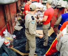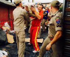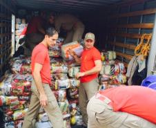 Os materiais recebidos na sede do 3° Subgrupamento de Bombeiros Independente foram distribuídos em caminhões da defesa civil e encaminhados aos municípios para que as Coordenadorias Municipais de Proteção e Defesa Civil façam as entregas.