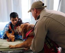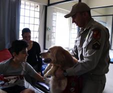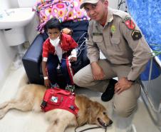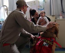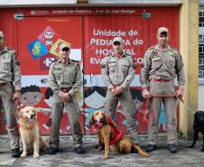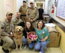 Ala de pediatria do Hospital Evangélico recebe visita de bombeiros e cães de busca em Curitiba 10/10/2017 - 15:40