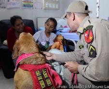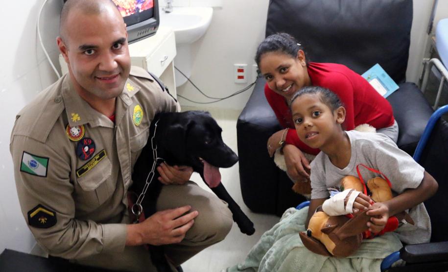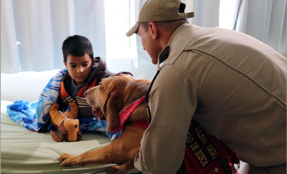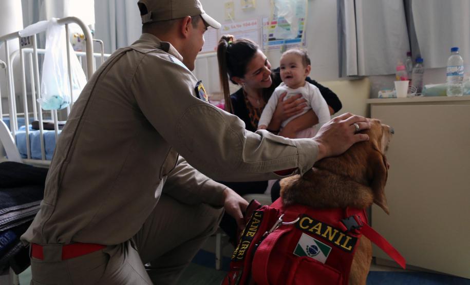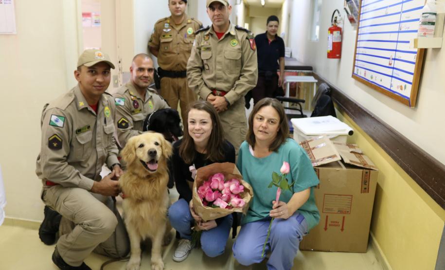 A labradora Suzi, que ainda está em fase de treinamento, pulou e entreteve a criançada com seu jeito meigo e brincalhão. Já o Golden Retiver Thor fez um show à parte durante as visitas aos quartos dos pequenos pacientes, alvo de muitas fotos com as enfermeiras, médicos e acadêmicos de Medicina. Já a veterana Jane, primeiro canino da unidade, desfilou majestosamente pelos corredores das alas de pediatria, ornamentada com fitas cor de rosa e lantejoulas nas volumosas orelhas. Já aposentada, ela atuou em centenas de ocorrências durante nove anos e salvou muitas vidas.