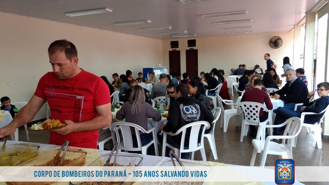 O almoço desse domingo (13) teve dupla comemoração: o dia dos pais e os 41 anos do Corpo de Bombeiros de Foz do Iguaçu. Foram cerca de 100 pessoas que se reuniram no Centro de Treinamento Aquático (CTA) para confraternizar o momento de celebração.