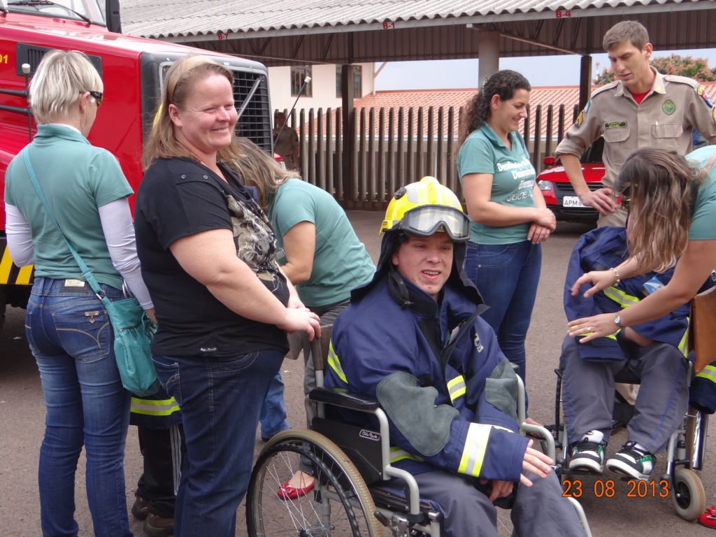 A visita consta no cronograma de eventos sócio-educativos que a APAE preparou para os alunos em decorrência da Semana nacional da pessoa com Deficiência intelectual e múltipla, que acontece entre os dias 21 a 28 de agosto. Segundo a diretora da instituição Srª Cláudia Blauth da Silva, os alunos, que compreendem uma faixa etária de 4 a 80 anos, estavam muito ansiosos para participarem desse encontro com o Corpo de Bombeiros.