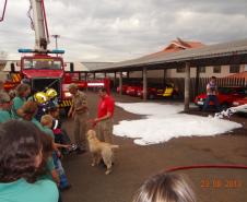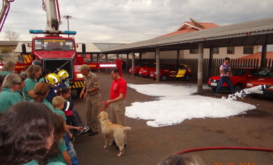 Várias foram as atividades realizadas durante esta manhã: passeio na auto plataforma mecânica, com direito a uma bela vista do município de Cascavel, uso dos equipamentos de proteção individual para combate a incêndio, sendo realizado ainda uma apresentação de combate a incêndio com o uso de espuma, mas a atividade que mais despertou o interesse dos alunos foi a presença da cadela Lili, utilizada pelo Grupamento em operações de busca de pessoas.