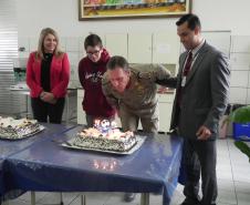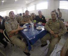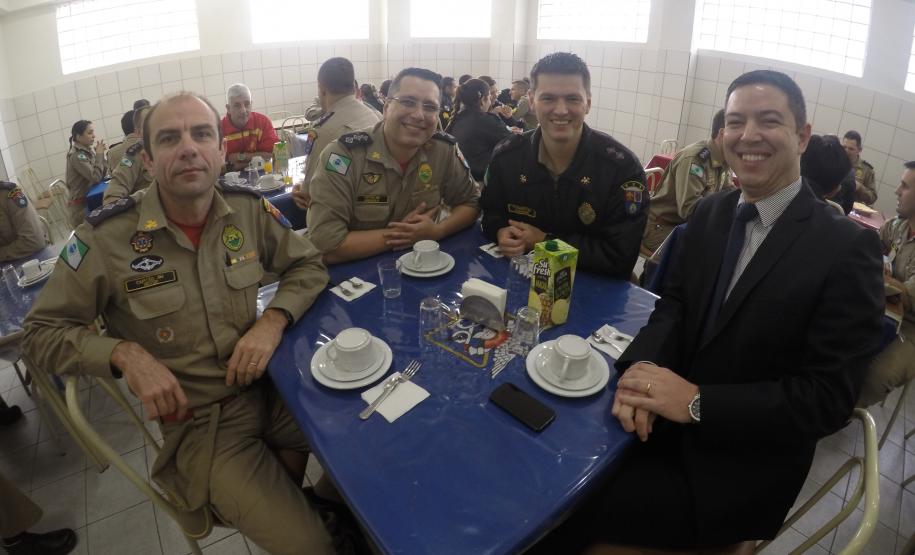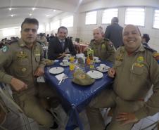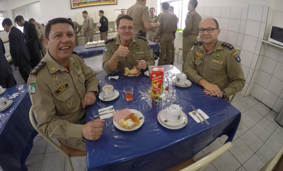 Na manhã desta terça-feira (21) foi comemorado o aniversário do Comandante do Corpo de Bombeiros, Coronel Juceli Simiano Junior. Um café da manhã, servido no Quartel do Comando do Corpo de Bombeiros, marcou a comemoração da data. Estiveram presentes o Exmo. Secretário de Segurança Pública, Dr. Wagner Mesquita, o Comandante Geral da PMPR, Coronel Mauricio Tortato, o Chefe do Estado Maior do CB, Coronel Fábio Mariano de Oliveira, o Chefe de Gabinete da SESP, Dr. Roberto Milanezi, o Diretor Geral da SESP, Dr. Francisco José Batista da Costa, o Diretor de Apoio Logístico da PMPR, Cel. João Francisco dos Santos Neto, o Ajudante Geral da PMPR, Cel. Washington Alves da Rosa, demais Oficiais e Praças da Corporação.