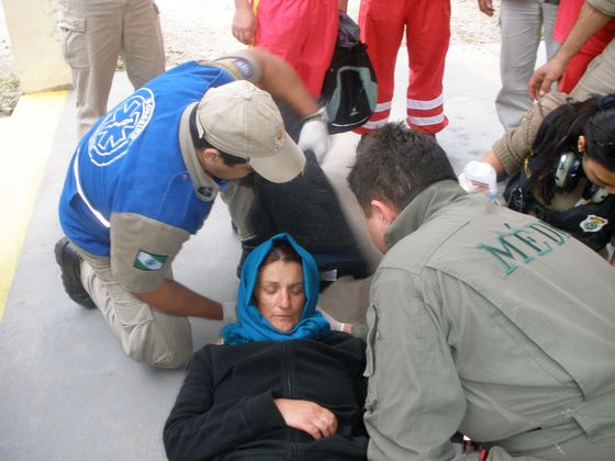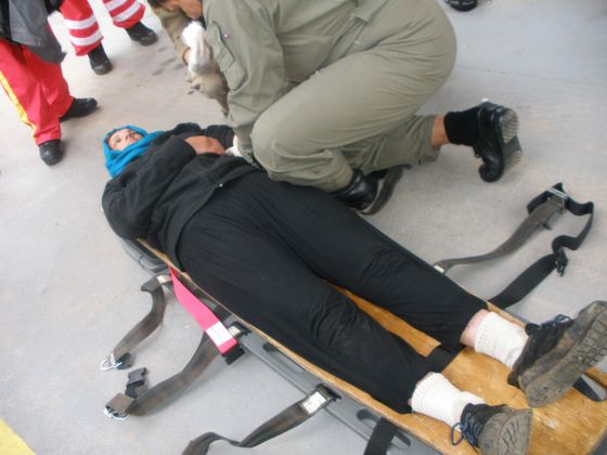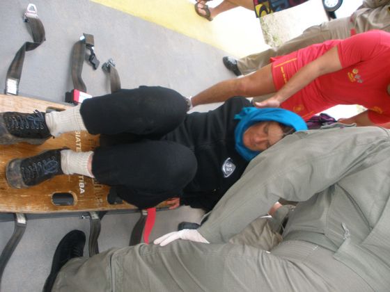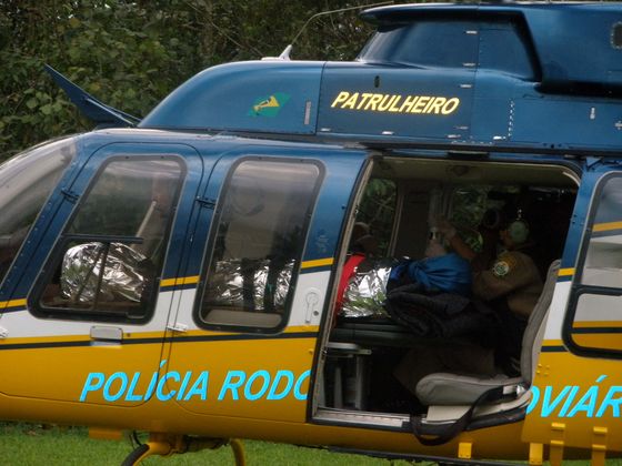 Denise é levada pelos socorristas ao helicóptero para ser encaminhada ao hospital