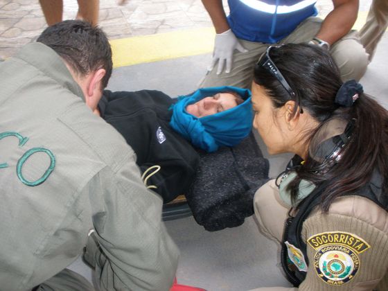 Denise é preparada pelos socorristas para ser encaminhada ao hospital
