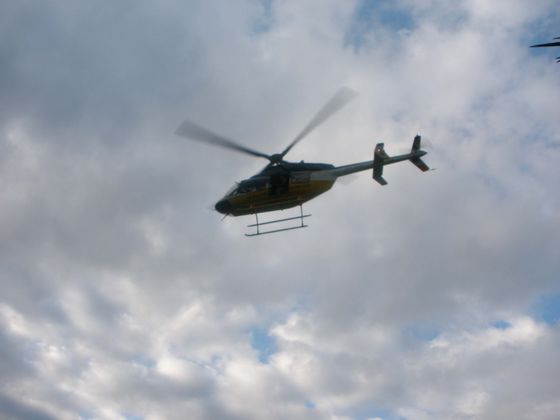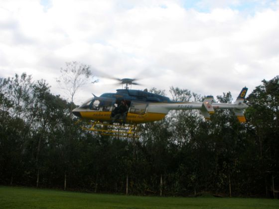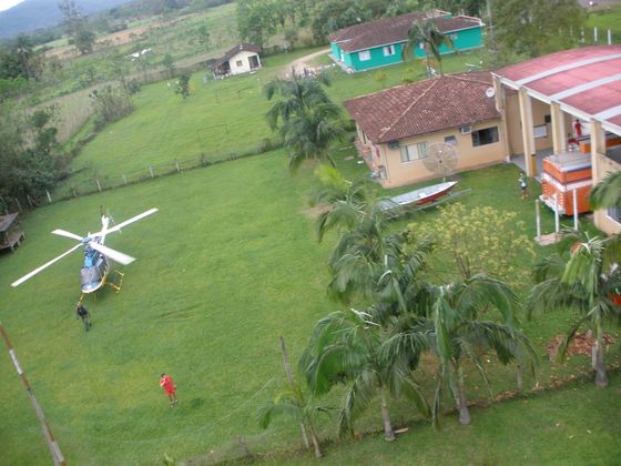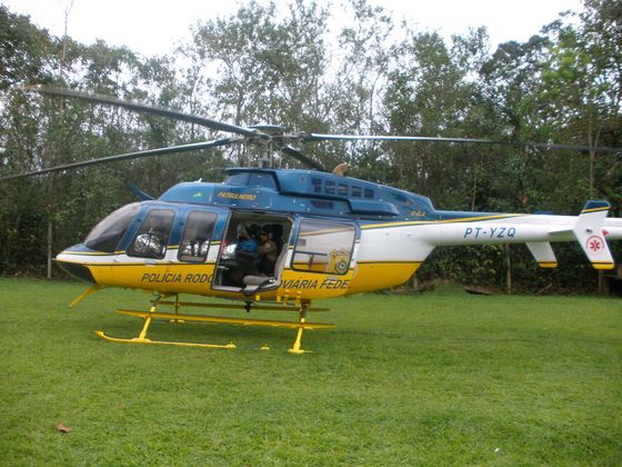 Helicóptero aguarda chegada de Denise Posto do Bombeiro em Morretes