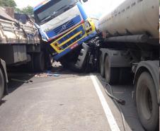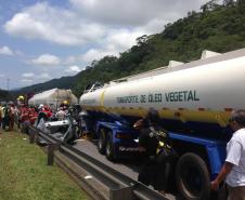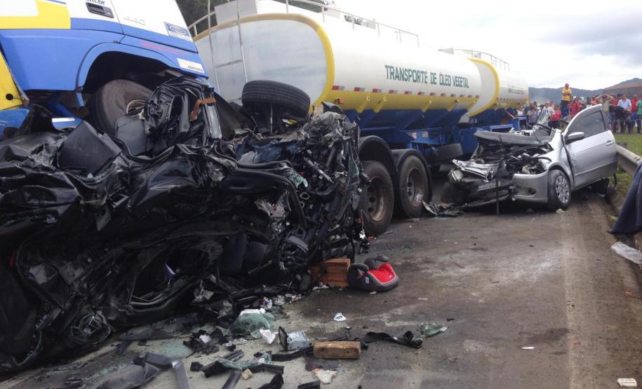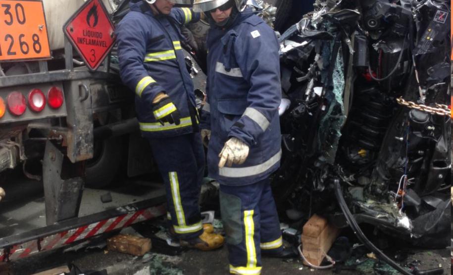 O 8º Grupamento de Bombeiros, em apoio à concessionária ECOVIA, deu atendimento à ocorrência de engavetamento na BR 277, km 42 sentido Paranaguá, onde um caminhão e dois automóveis leves foram atingidos por um segundo caminhão que descia pela mesma pista. Após a colisão, o veículo mais a frente ficou completamente preso entre os caminhões e o outro prensado contra a barra de proteção da pista.