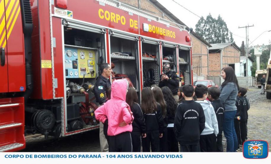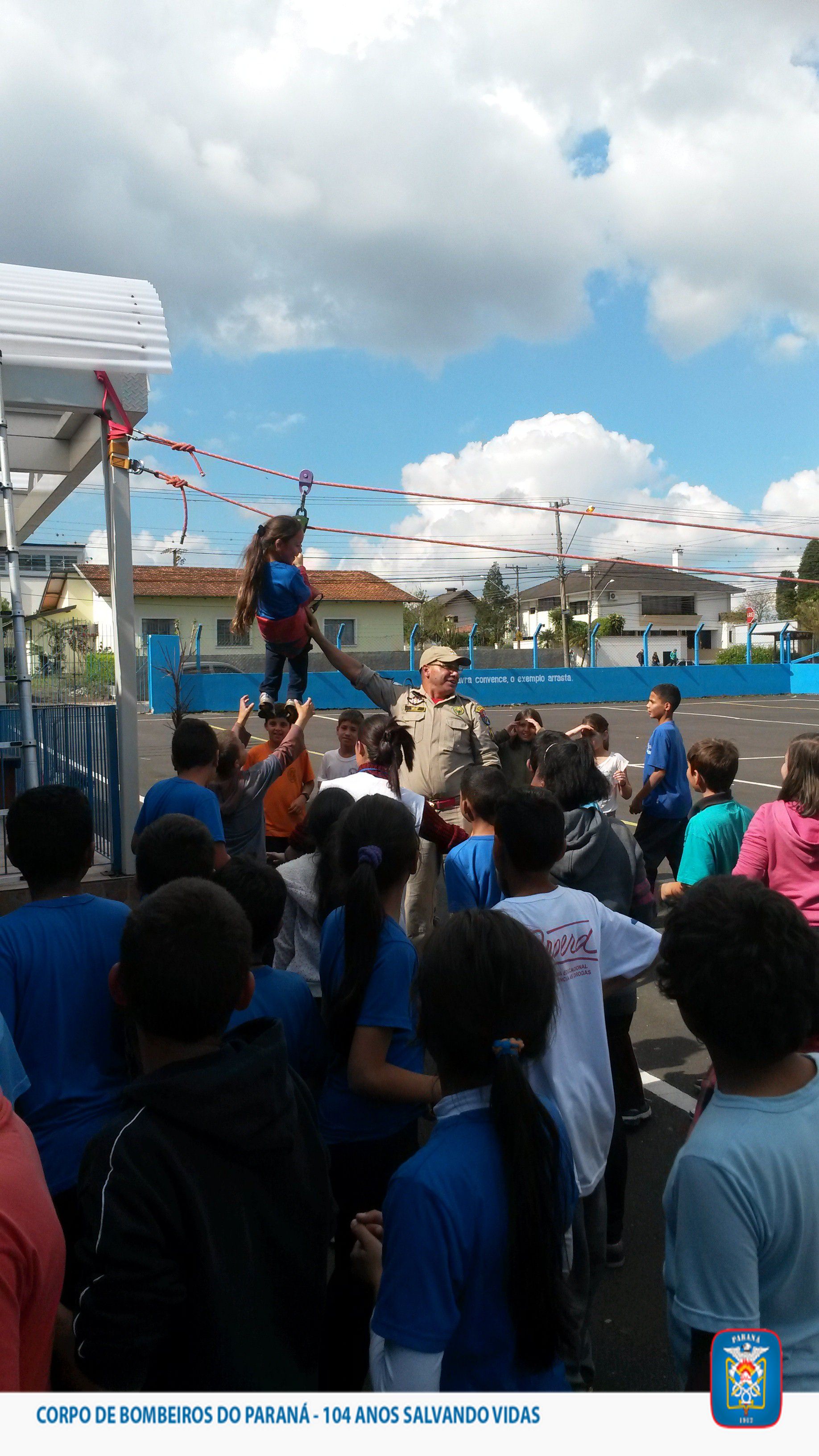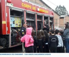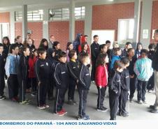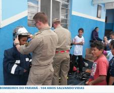 Em comemoração aos 104 anos do Corpo de Bombeiros do Paraná, o 2° Grupamento de Bombeiros está desenvolvendo atividades que buscam promover uma aproximação com a Sociedade. Na Cidade de Ponta Grossa, no dia 04 de Outubro, uma equipe do referido Grupamento deslocou a Escola da Guarda Mirim para desenvolver atividades recreativas e demonstração de materiais aos alunos. Na Cidade de Irati, as atividades foram desenvolvidas na Escola Municipal Antonina Fillus Panka. Além do hasteamento das bandeiras e do cântico do Hino Nacional, os alunos e professores puderam interagir com os bombeiros, os quais explanaram sobre a corporação e incentivaram ao estudo, educação e cidadania.