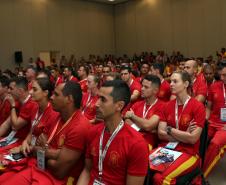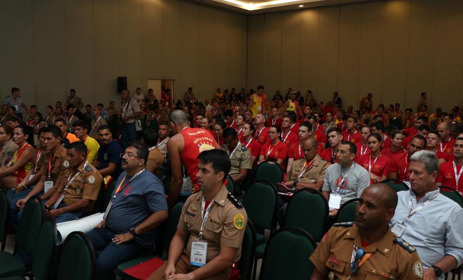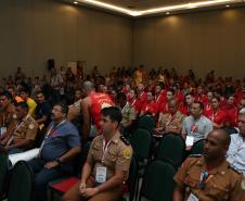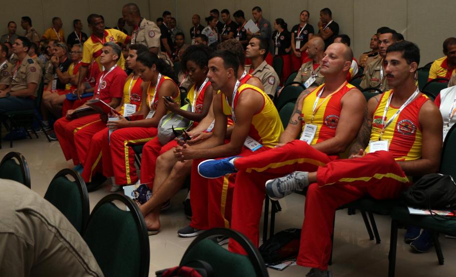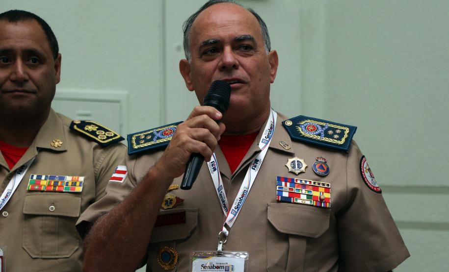 O Comandante do Corpo de Bombeiros do Paraná, coronel Edemilson de Barros, acompanhado por outros Comandantes-Gerais do Brasil e pelo Presidente do Conselho Nacional dos Corpos de Bombeiros Militares do Brasil (LIGABOM) e Comandante-Geral do Corpo de Bombeiros da Bahia, coronel Francisco Luiz Telles, deram as boas vindas aos participantes durante a conferência com a coordenação da competição da Sociedade Brasileira de Salvamento Aquático (SOBRASA) e do Corpo de Bombeiros paranaense nesta quarta-feira (21/11).