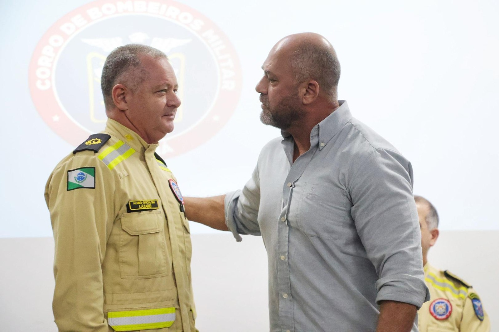 Durante a cerimônia, o Cel. Hiller fez uso da palavra e destacou a importância do curso, ressaltando o papel fundamental que os futuros oficiais especialistas desempenharão no fortalecimento da estrutura organizacional do CBMPR.