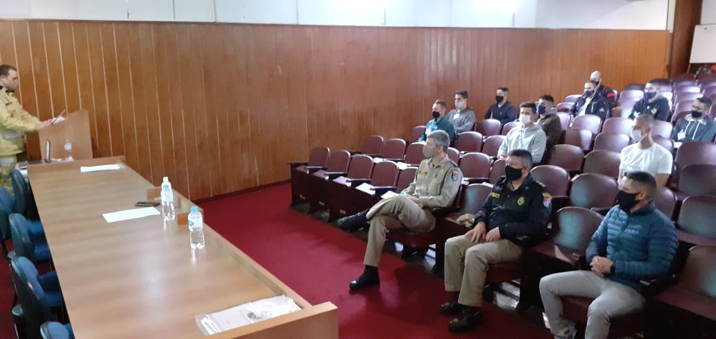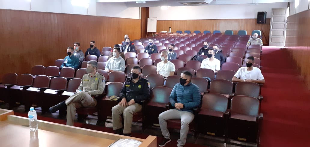 Aos 31 dias do mês de outubro de 2020, ocorreu a aula inaugural do Curso de Capacitação de Guarda-Vidas Civis Voluntários - modalidade “Águas Abertas” - Centro de Ensino e Instrução no Salão Nobre da Academia Policial Militar do Guatupê. Estiveram presentes o Coronel BM RR Paulo Henrique de Souza, palestrante da Aula Magna, o Subcomandante da APMG, Ten.-Cel. QOBM Gerson Gross; o Chefe do Centro de Ensino e Instrução, Maj. QOBM Eduardo José Slomp Aguiar; o Coordenador do CGVCV, 1º Ten. QOBM Bruno Zirpoli de Mattos e o Auxiliar de Coordenação, 2º Sgt. QPM 2-0 Paulo Cristiano Stori.