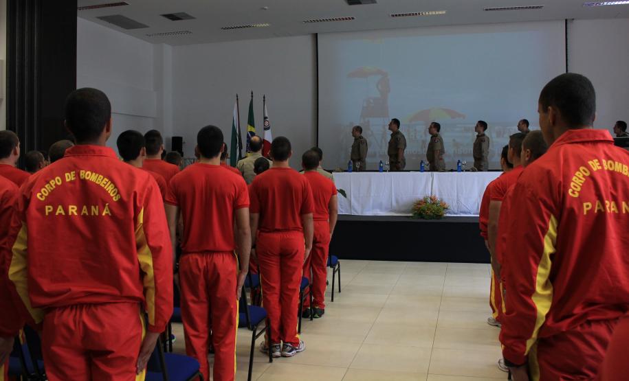 Na manhã de 20 de outubro de 2014 foi realizado no Auditório do SESC/Matinhos a Aula Inaugural do Curso de Guarda-Vidas, categoria cabos e soldados, Turma 2014. O curso terá a participação de 78 alunos que receberão uma formação completa que envolve treinamento de natação, salvamento e busca aquática, conhecimentos das técnicas de primeiros socorros ao afogado, noções de oceanografia, cuidados com o banhista e ações de prevenção e salvamento, preparando assim estes profissionais para atuarem em todo Litoral do Paraná. O evento contou com a presença do Chefe do Estado Maior do Corpo de Bombeiros, Coronel Fábio Mariano de Oliveira, o qual realizou uma palestra introdutória ao Curso.