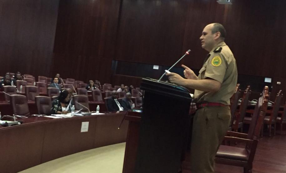 Em seguida, e como ponto principal do evento, a comissão formada por Oficiais do Corpo de Bombeiros do Paraná realizou a apresentação de palestras a respeito da estrutura, formação, e funcionamento da Corporação, apresentando como um dos modelos possíveis a ser implementado naquele país, como forma de socorro à população.