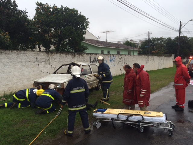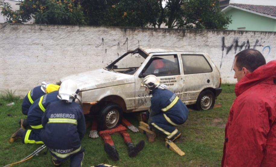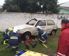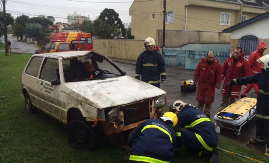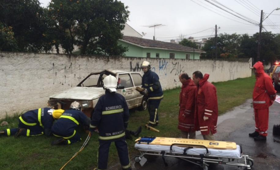 Apenas, ao chegar no local, puderam verificar que se tratava de um simulado, porém, devendo realizar o atendimento conforme protocolo de salvamento veicular, definindo áreas de atuação, técnicas de extricamento veicular e remoção de vítimas presas nas ferragens.
