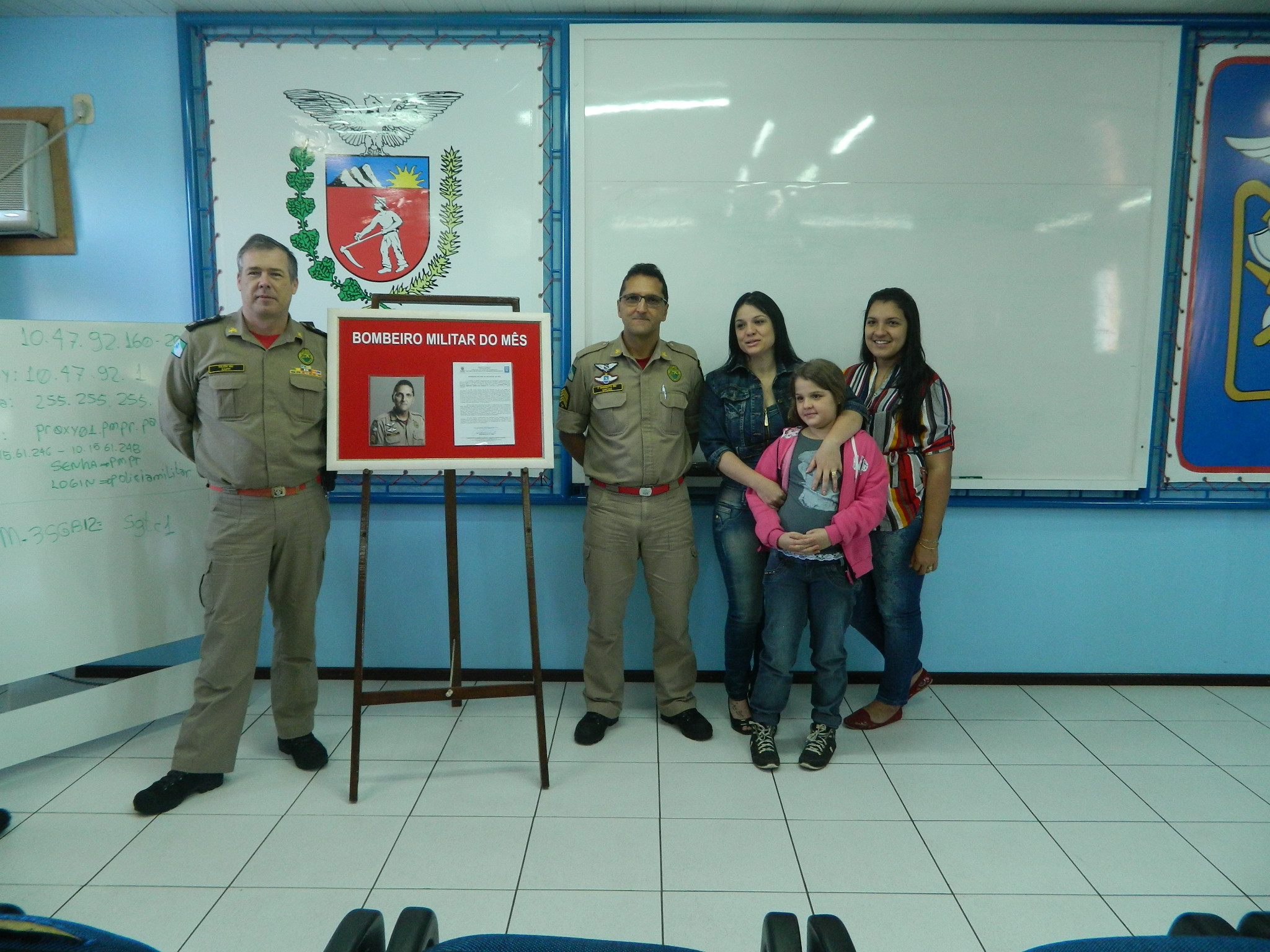 Em seguida, foi realizada a homenagem ao Bombeiro Destaque do mês de Agosto de 2013 ao 1° Sargento Gross, Auxiliar B-5 e B-8 do 3° SGBI.
