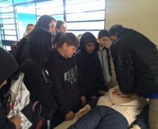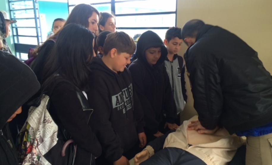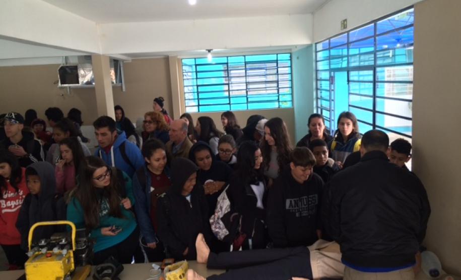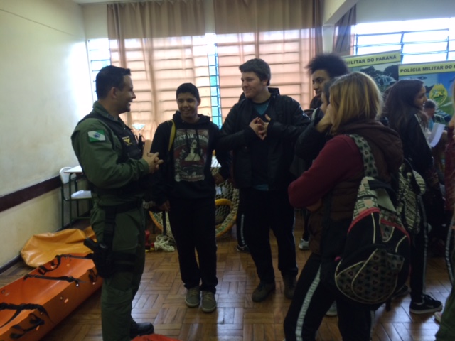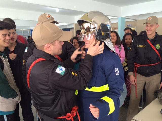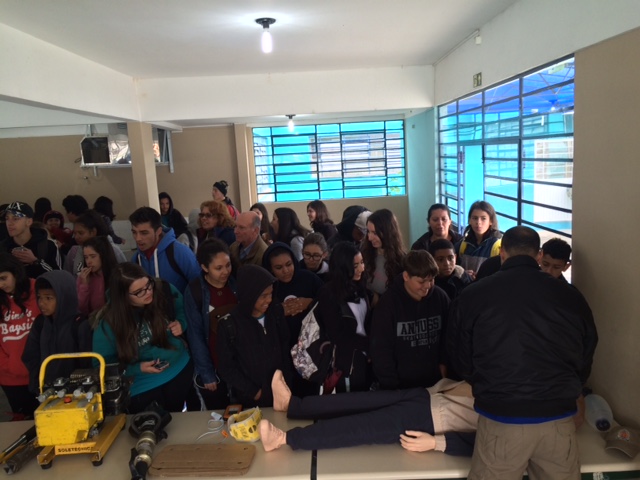 Os alunos puderam vestir o EPI de Combate a incêndio, manusear o EPR, aprender sobre RCP, ver as ferramentas do desencarcedor e tirar diversas dúvidas sobre a nossa atividade.
