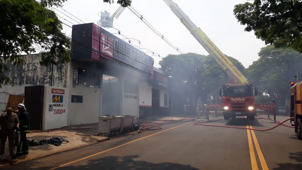 Bombeiros combatem incêndio de grandes proporções em barracão de Maringá 14/10/2020 - 16:17