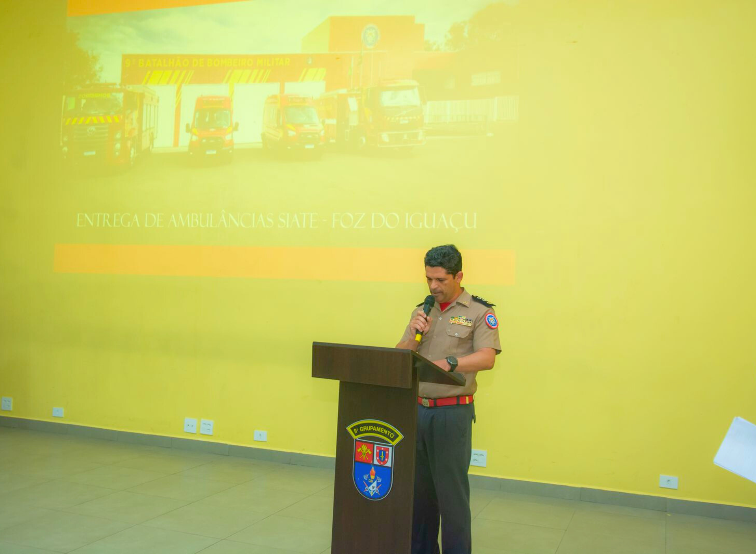 Nesta quinta-feira (24), o Corpo de Bombeiros de Foz do Iguaçu recebeu duas novas ambulâncias adquiridas em processo licitatório, com participação do 9º Batalhão de Bombeiro Militar, Secretaria de Saúde, e demais setores técnicos do município de Foz do Iguaçu.