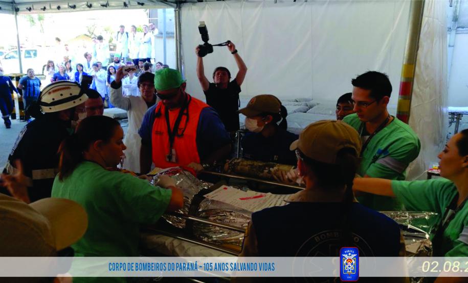 Na manhã de quarta-feira (02) o 1 º Grupamento de Bombeiros participou de um simulado de AMUVI (atendimento a múltiplas vítimas) no Hospital do Trabalhador, referência nacional de atendimento a emergência.