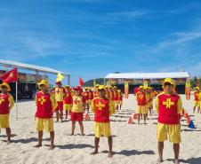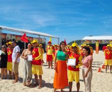 O Corpo de Bombeiros Militar do Paraná realizou nesta terça-feira (14) a solenidade de encerramento da capacitação de Guarda-Vidas Civil – águas abertas e águas interiores, turma 2022/2023. O curso iniciou no dia 28 de outubro de 2022 e as atividades dos profissionais vão até o fim do Verão Maior Paraná, que encerra no dia 26 de fevereiro. A comemoração dos 35 novos profissionais reuniu familiares, amigos e colegas de farda na sede do 8º Grupamento de Bombeiros, em Matinhos.