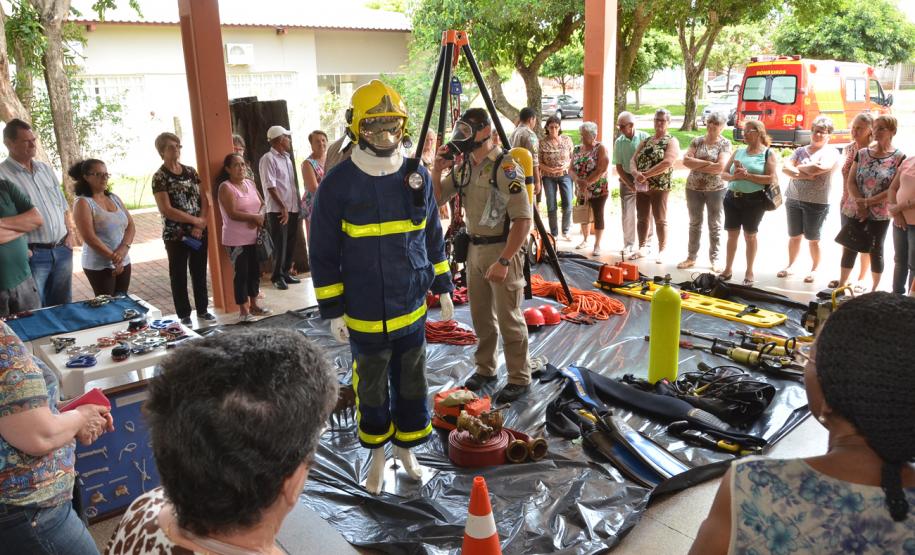 Ministrando palestras com o tema “Cuidados com as quedas na terceira idade”, os militares alertam a população sobre os riscos e a prevenção, além de fazerem a demonstração de equipamentos, serviços e viaturas utilizadas pela Corporação.