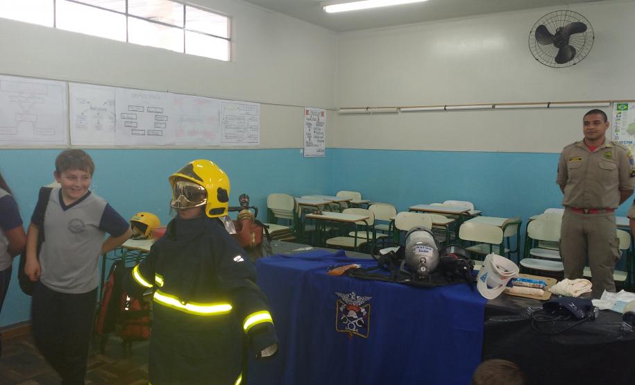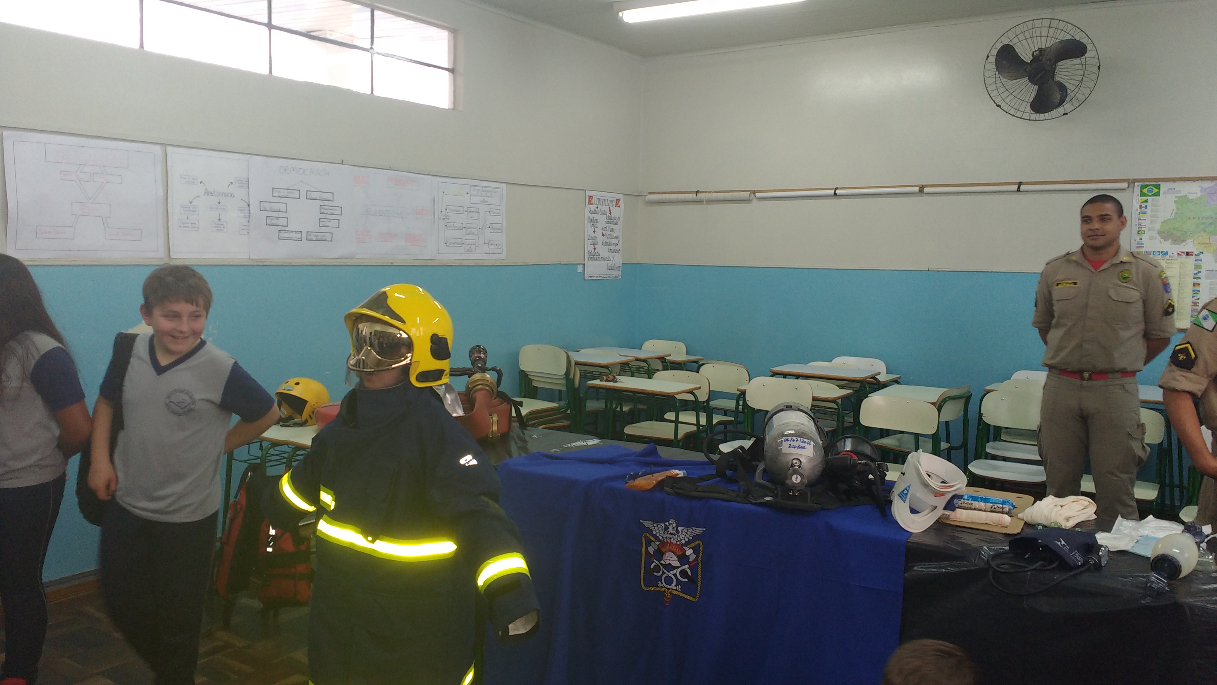 Nos dias 13, 14 e 15 o 1º Grupamento de Bombeiros realizou exposição de materiais em três escolas da rede estadual de ensino.