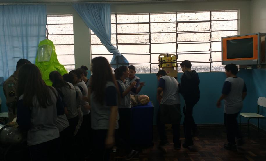 Essa ação faz parte do calendário de atividades da Polícia Militar nas escolas, em que várias unidades realizam a demonstração dos materiais que utilizam.