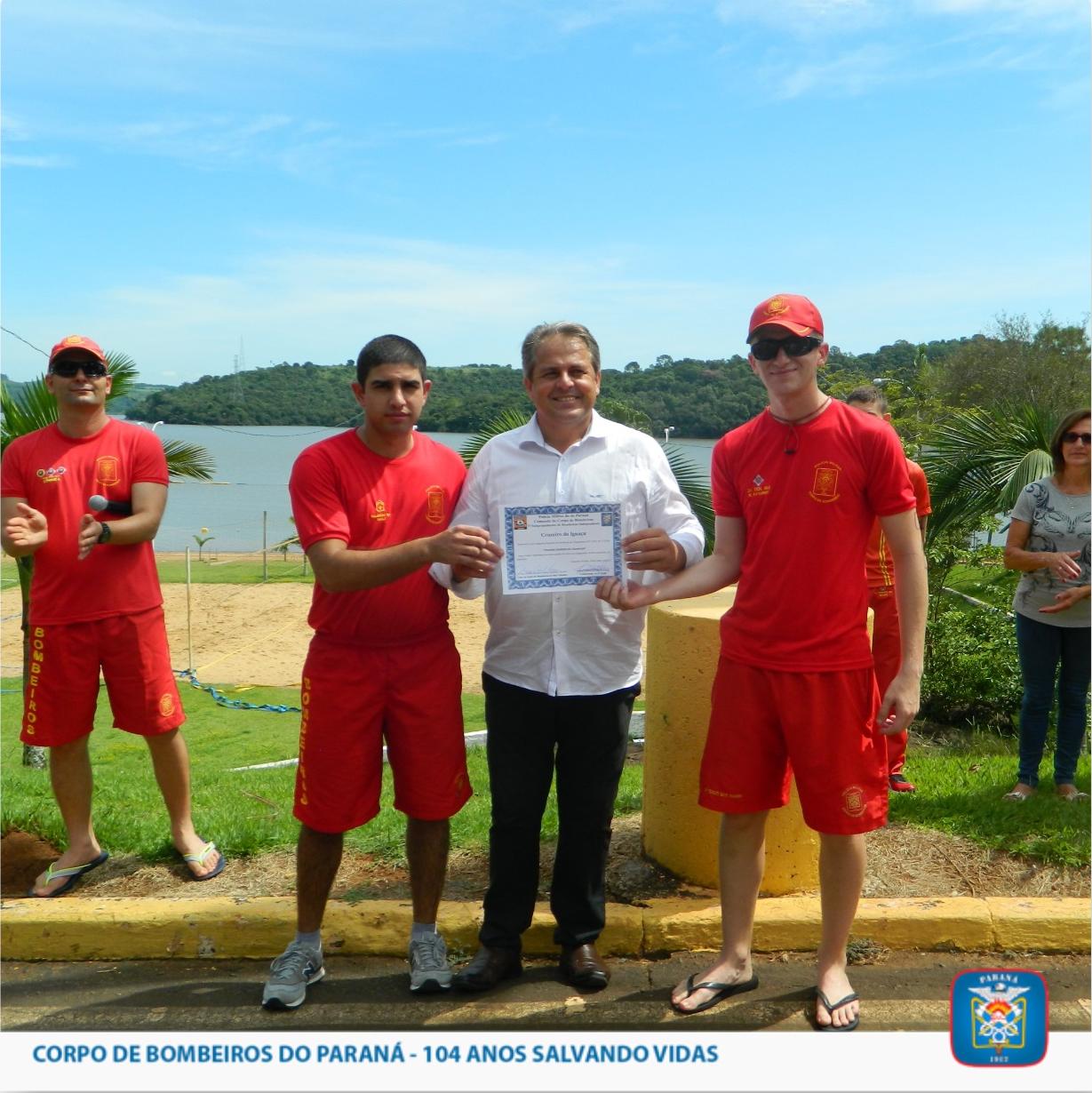 Na oportunidade o comando do 3º Subgrupamento de Bombeiros Independente de Francisco Beltrão entregou ao prefeito municipal de Cruzeiro do Iguaçu, Dilmar Túrmina, o certificado “Município Resiliente em Afogamento”, projeto-piloto que contou com palestras em escolas, sinalização padronizada no balneário e outras iniciativas visando a prevenção de afogamentos na temporada 2016/2017.