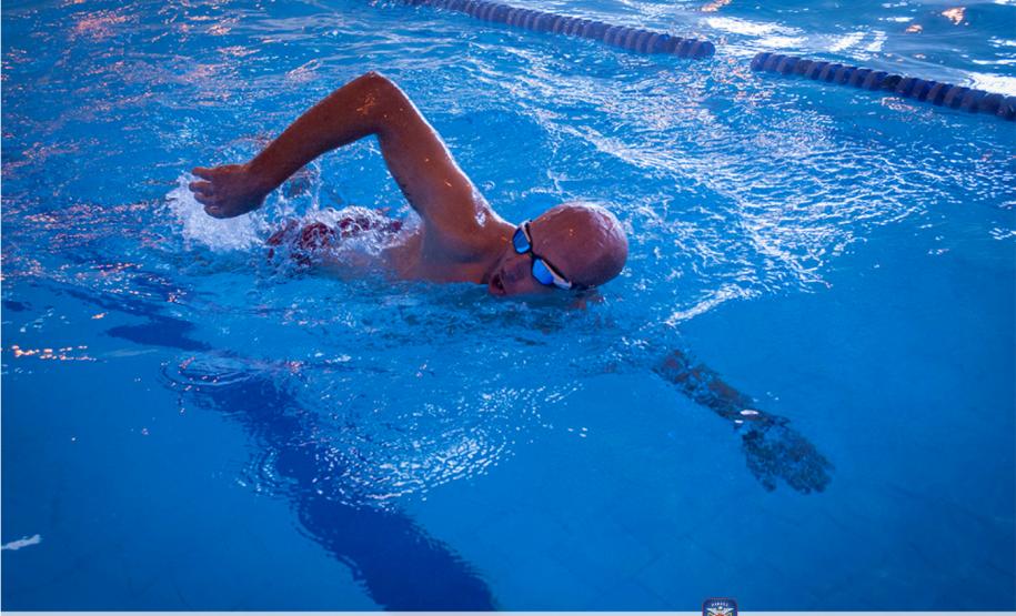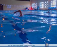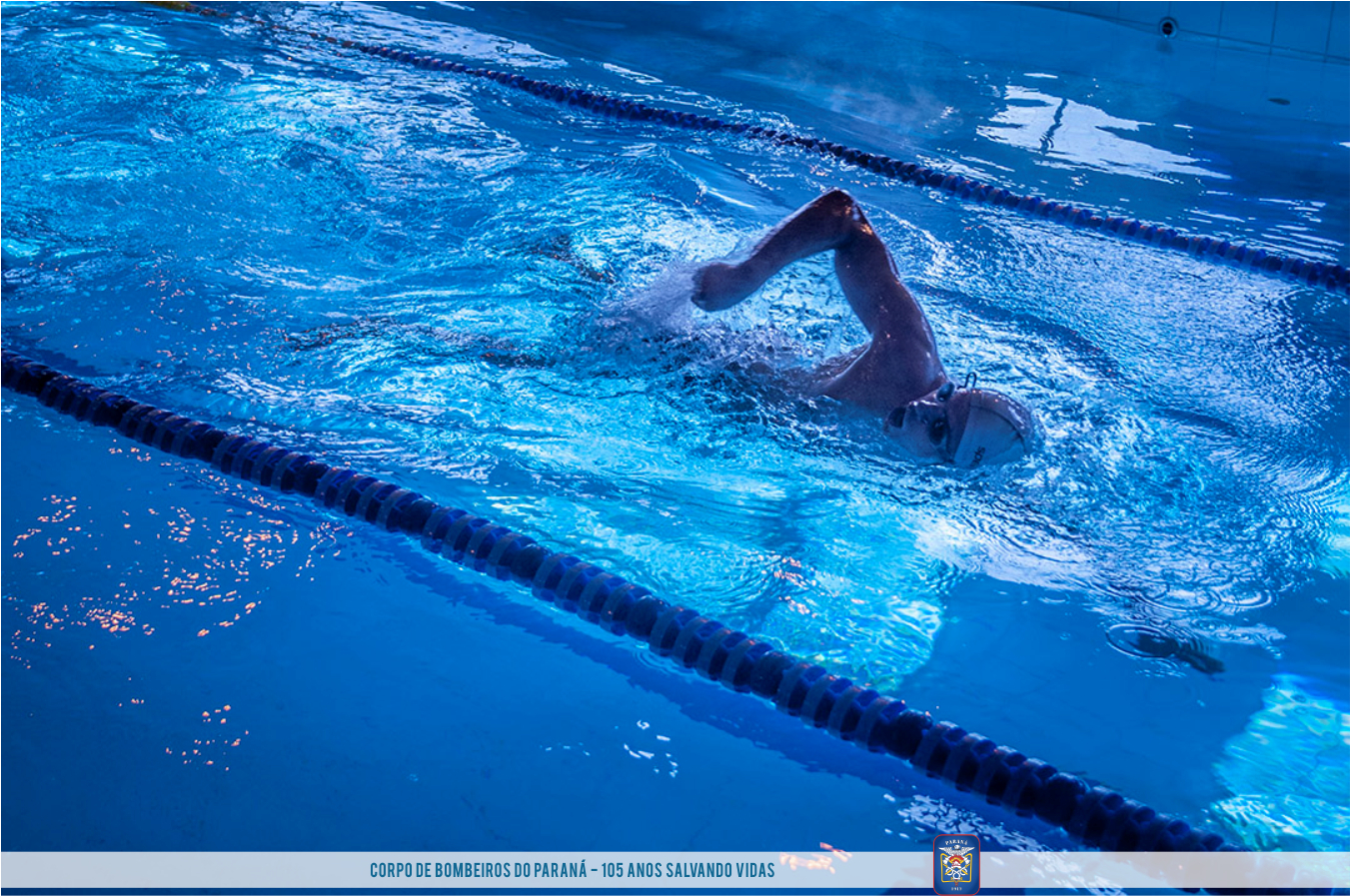 Na manhã de hoje, o 1º Grupamento de Bombeiros realizou uma prova de Revezamento Aquático para o seu efetivo interno.