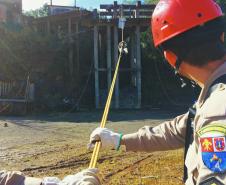 Entre os dias 14 e 18 de maio militares do 3º Subgrupamento de Bombeiros Independente participaram da instrução de nivelamento para atendimento de ocorrências envolvendo salvamentos em altura.