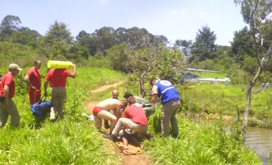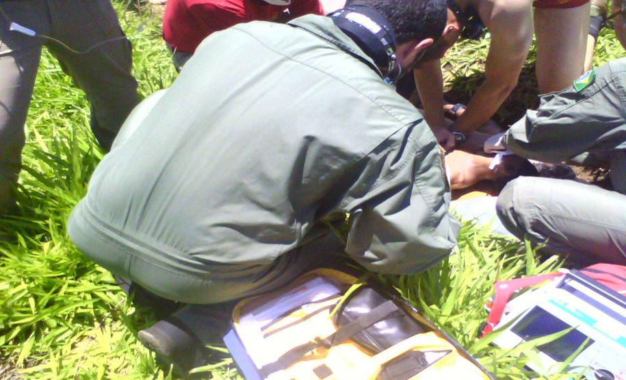 No local havia um jovem de 14 anos que já havia sido retirado da água com vida e com sinais de afogamento leve (grau 1 de afogamento). Ainda na represa, submerso e em local incerto estava o menino Thiago de 12 anos. Foram realizados diversos mergulhos no local até o momento em que Thiago foi localizado e retirado da água em parada cardiorespiratória (grau 6 de afogamento).