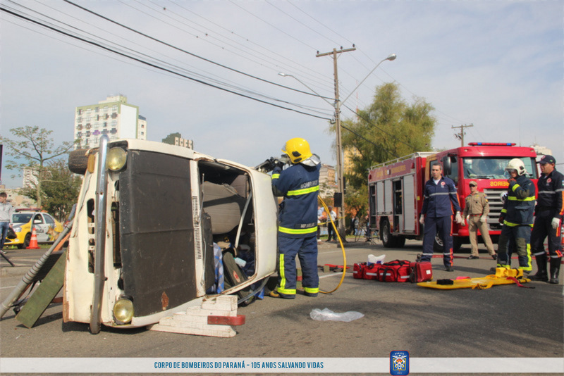 Corpo de Bombeiros de Ponta Grossa participou, no sábado (1) de um simulado de resgate veicular organizado em conjunto com a Polícia Militar, Autarquia Municipal de Trânsito e Transportes e SAMU.