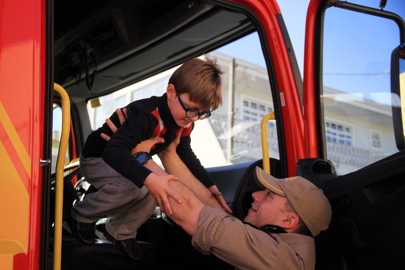 Os policiais e bombeiros presentes tiveram uma recepção bastante animada dos aniversariantes, em especial dos alunos Pablo e Henrique, apaixonados pelo serviço policial e bombeiro e que inclusive solicitaram a visita.